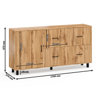 Габаритные размеры комода (ШхГхВ): 170,4х37,4х87 см.