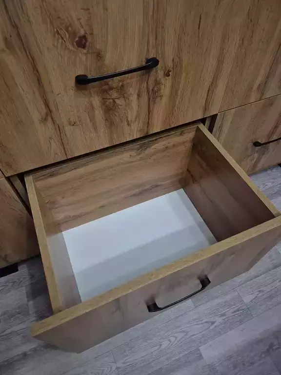 Корпус и фасады комода выполнены из высококачественной ламинированной ДСП толщиной 16 мм, а торцы обработаны ПВХ-кромкой для защиты от повреждений. Задняя стенка и дно ящиков изготовлены из ламинированной ДВП, что делает конструкцию долговечной и надежной. Комод поставляется в разобранном виде, упакованным в 4-х слойный гофрокартон, с подробной инструкцией по сборке и комплектом фурнитуры, что обеспечивает легкий и удобный процесс установки.