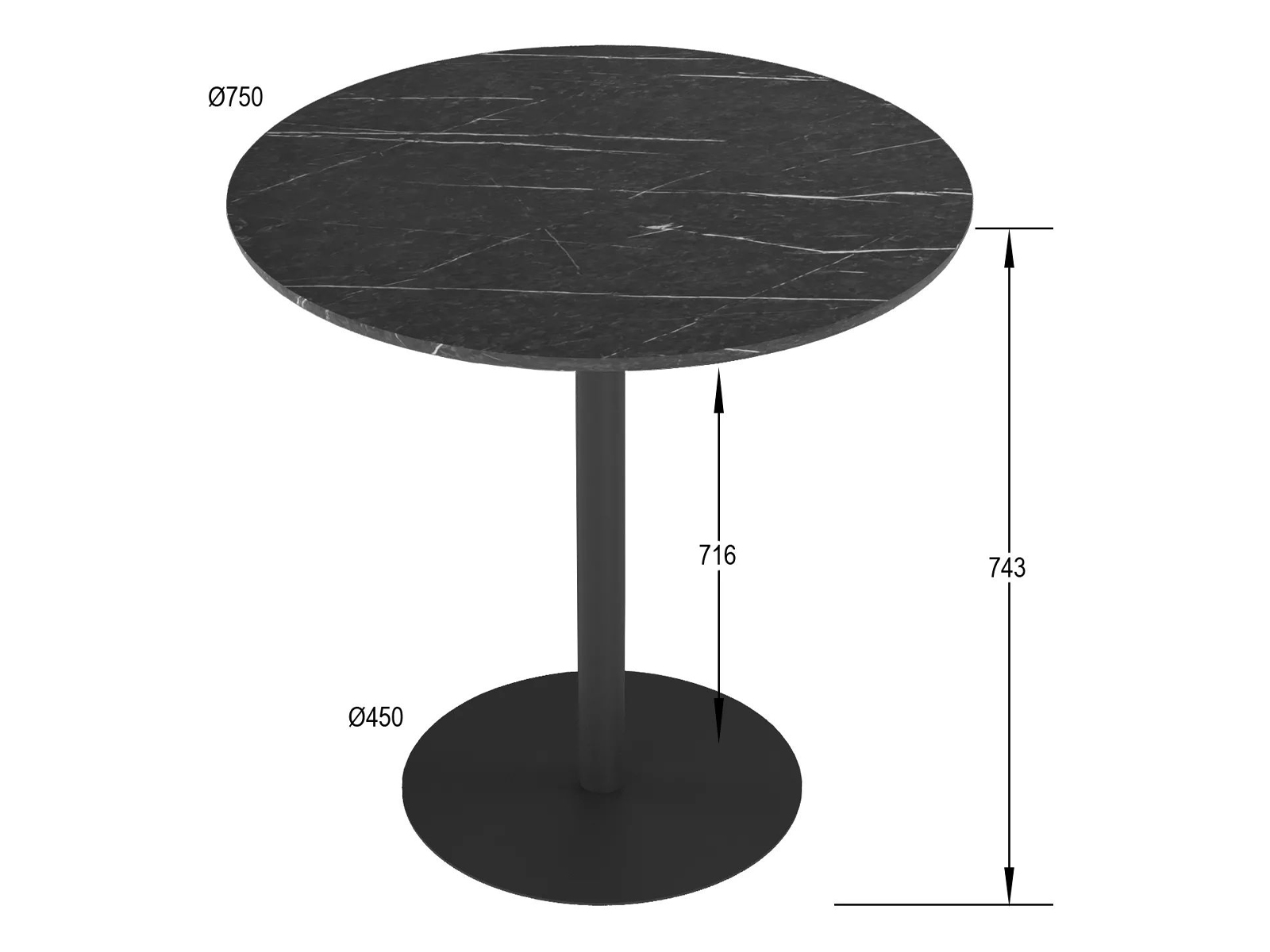 Размер столешницы: диаметр 750 мм., высота стола 743 мм.