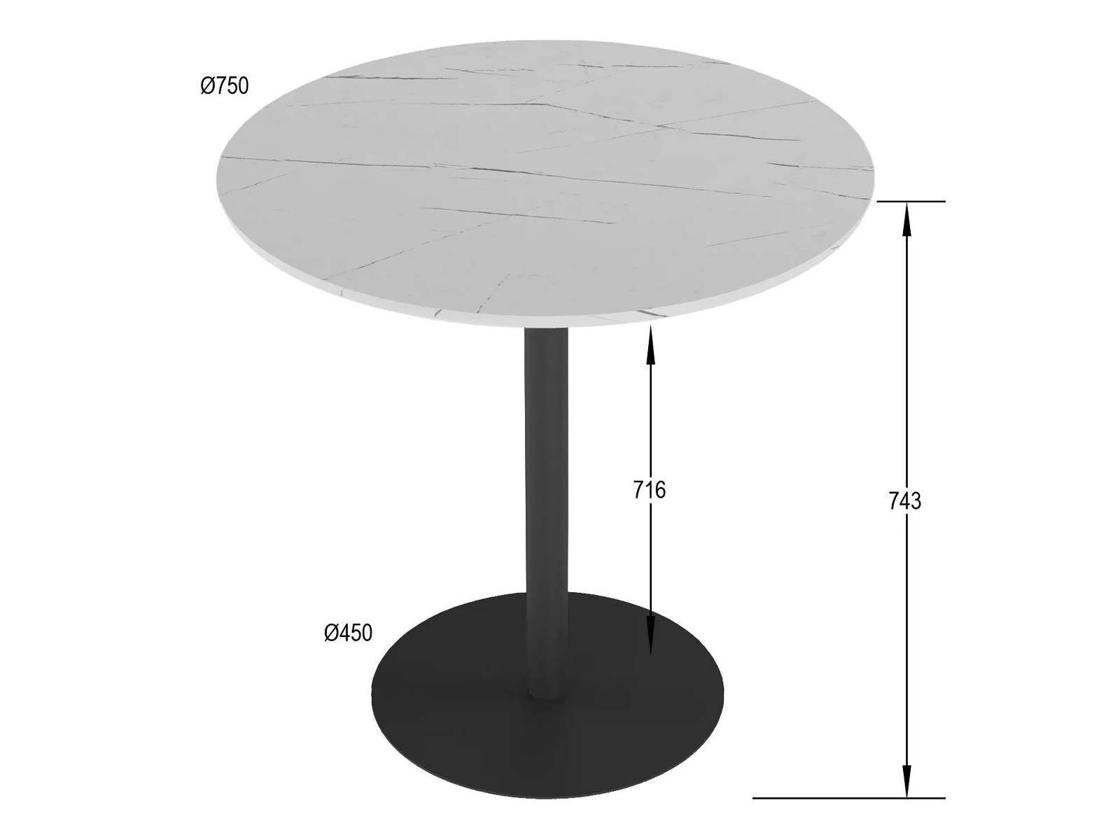 Размер столешницы: диаметр 750 мм., высота стола 743 мм.