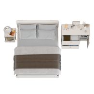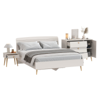 Комплектация включает кровать 1600 Афина 4-22901, комод с дверкой и тремя ящиками Афина 4-44901 и тумбу прикроватную Афина 4-09901.
