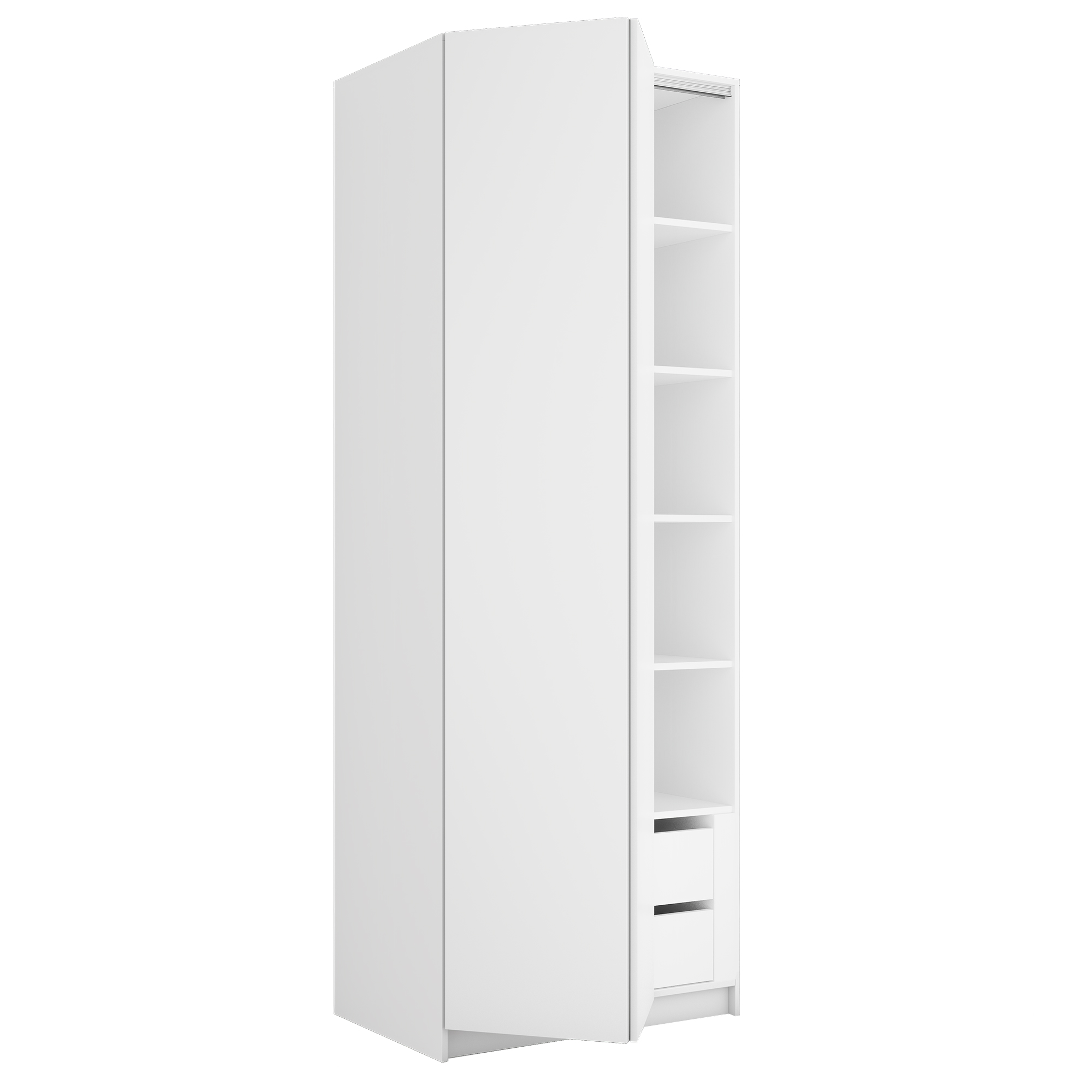 Шкаф складной Е1 Локер ("Гармошка" с системой Push to Move/Левый)81х52.5х220 см, с полками и модулем (Белый снег)