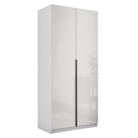 Шкаф распашной Е1 Локер 101x52.5x220 см, с белым стеклом , полками и модулем (Белый снег)