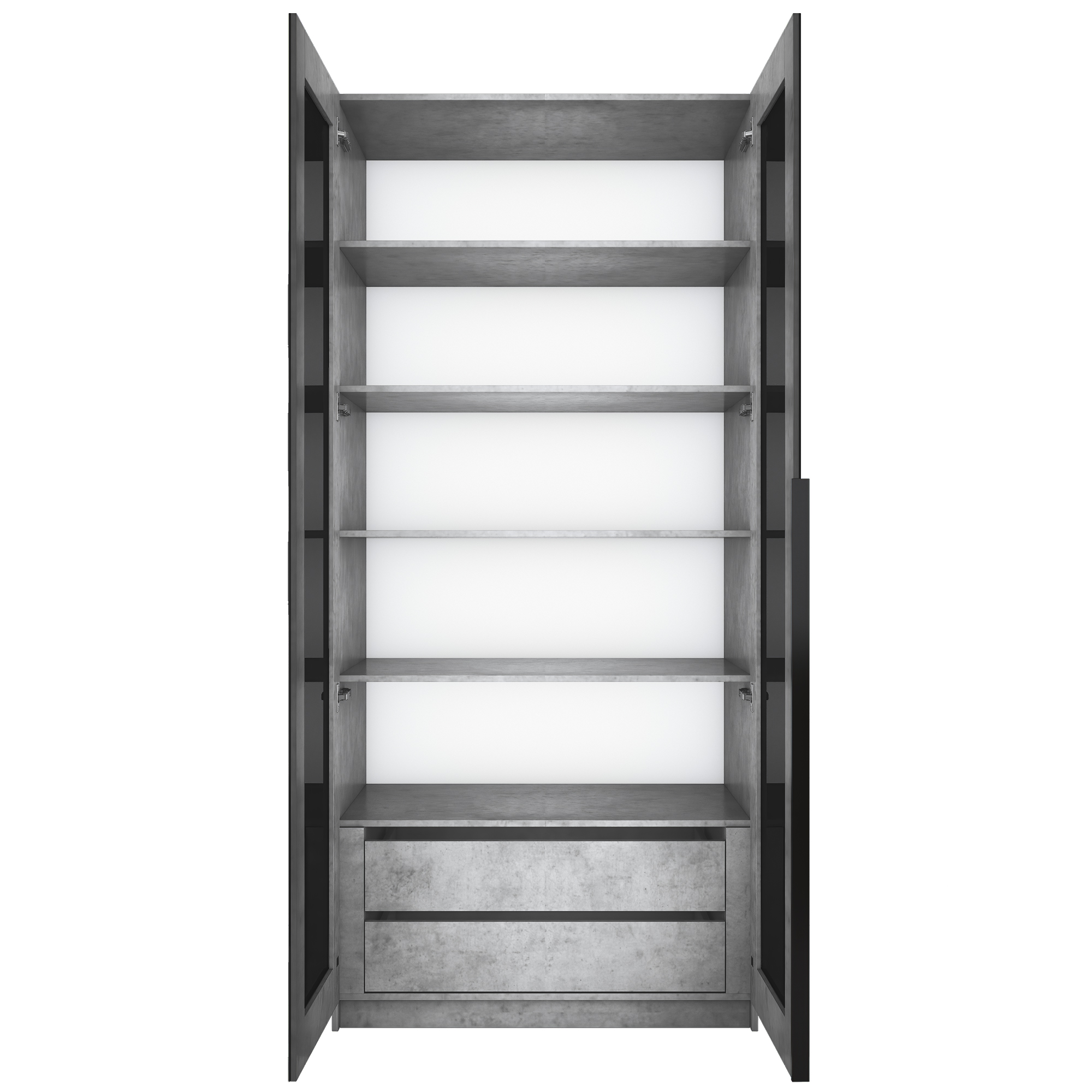 Шкаф распашной Е1 Локер 101x52.5x220 см, с черным стеклом , полками и модулем (бетон) Код I0000426781