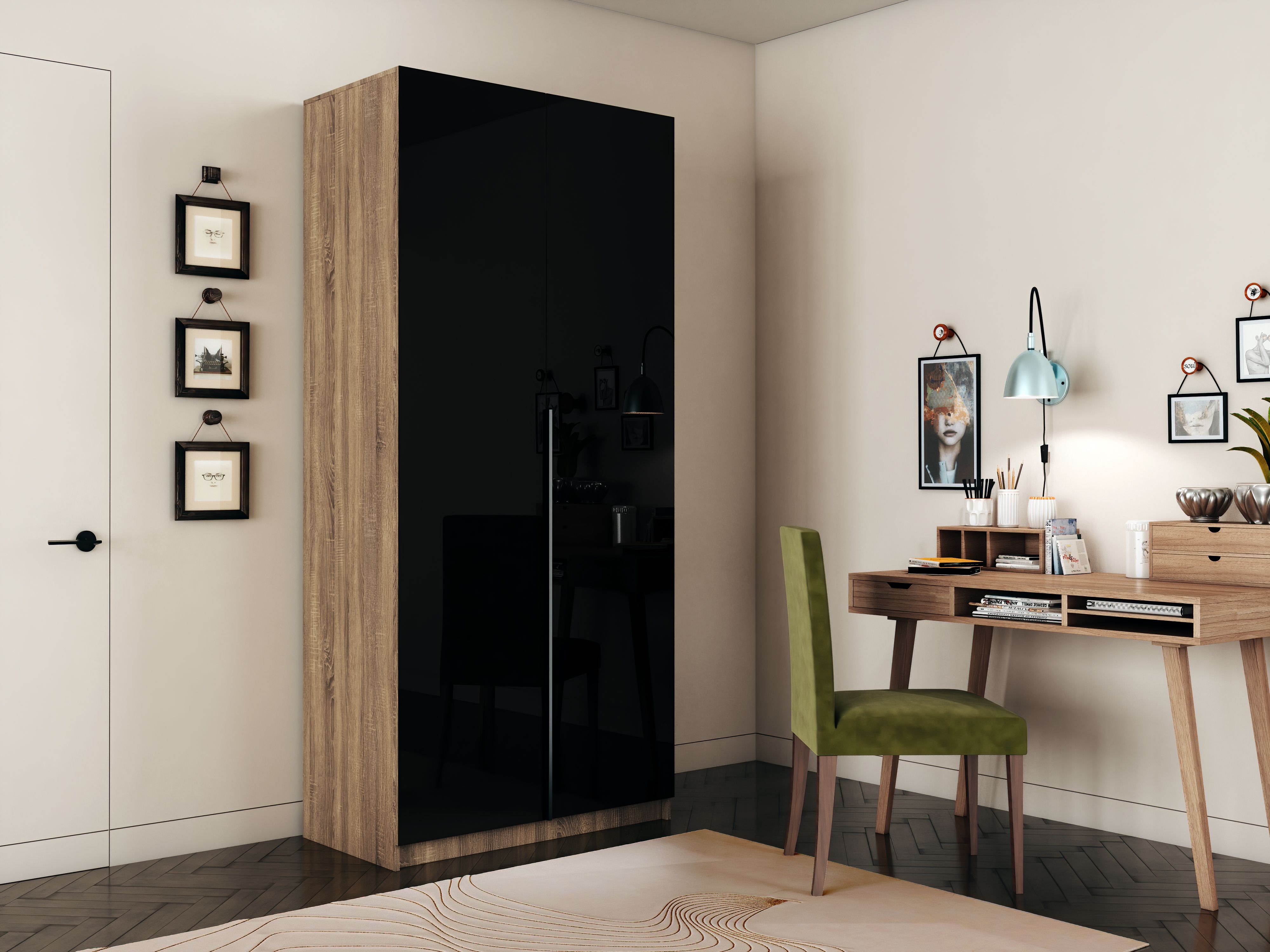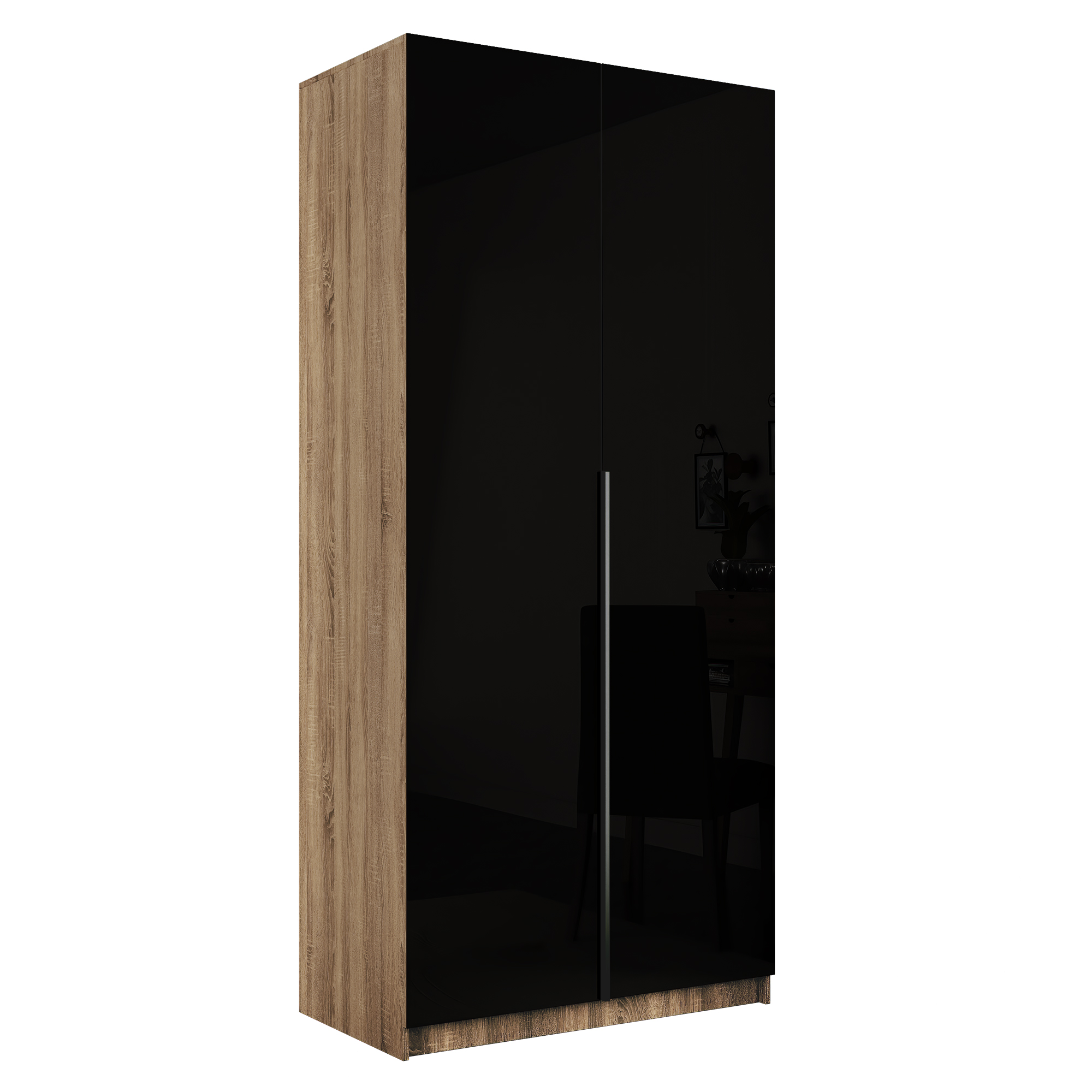 Шкаф распашной Е1 Локер 101x52.5x220 см, с черным стеклом и полками (Дуб сонома)