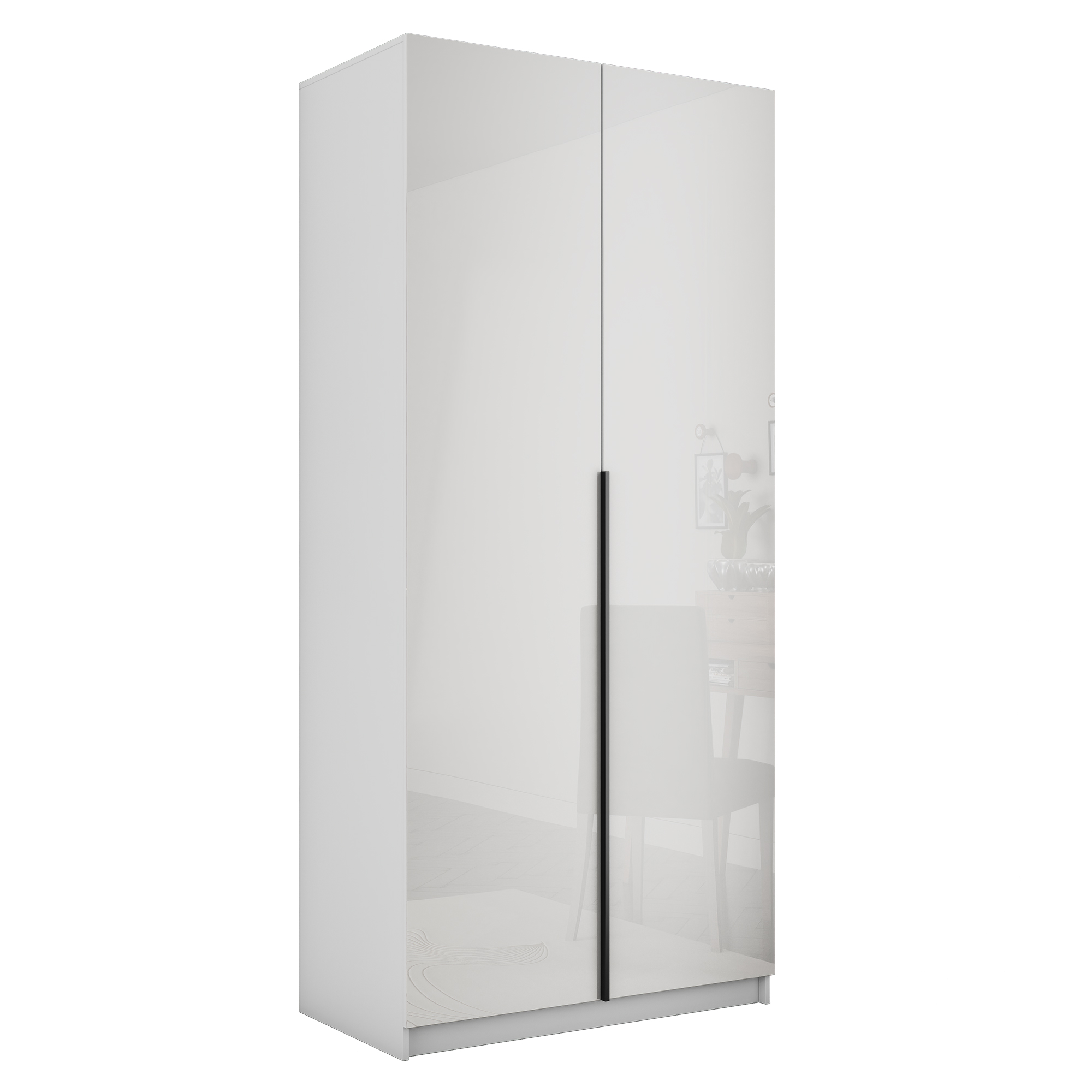 Шкаф распашной Е1 Локер 101x52.5x220 см, с белым стеклом и полками (Белый снег)