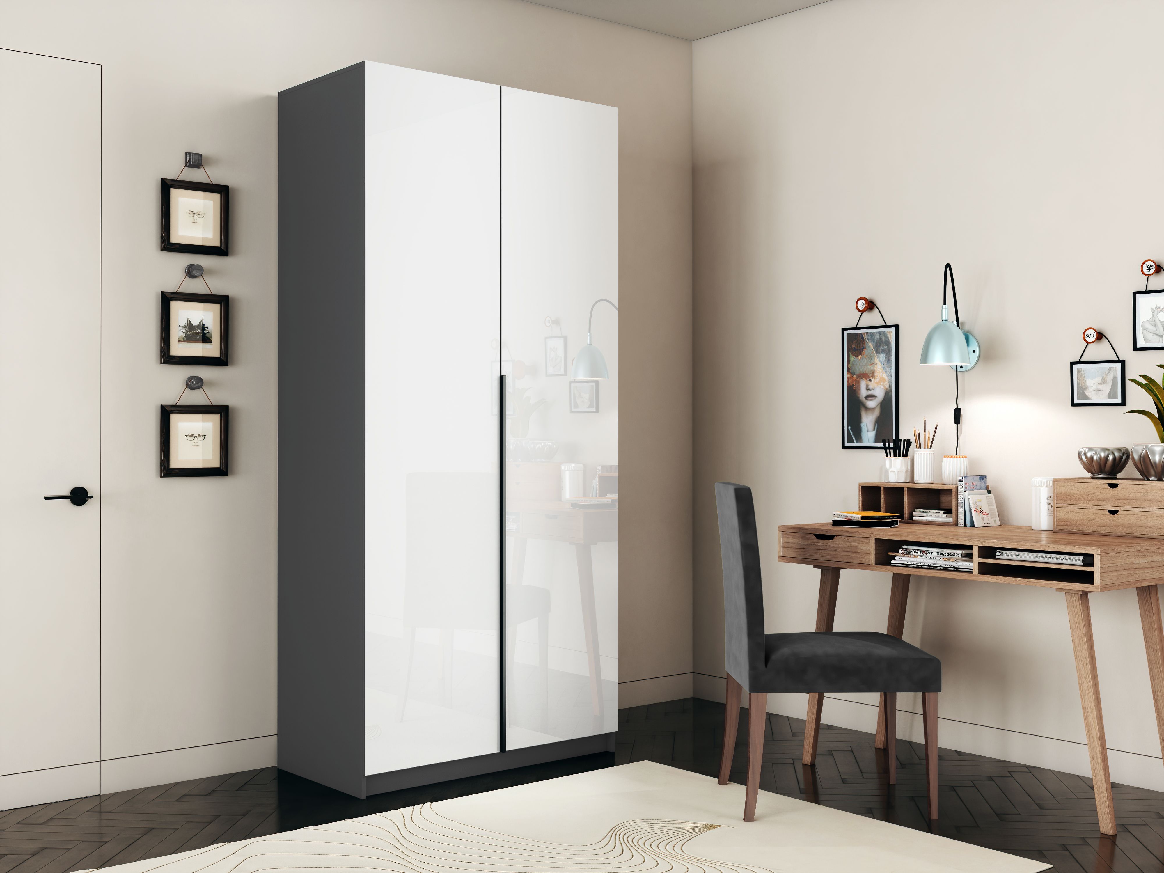 Шкаф распашной Е1 Локер 101x52.5x220 см, с белым стеклом и полками (Серый диамант)
