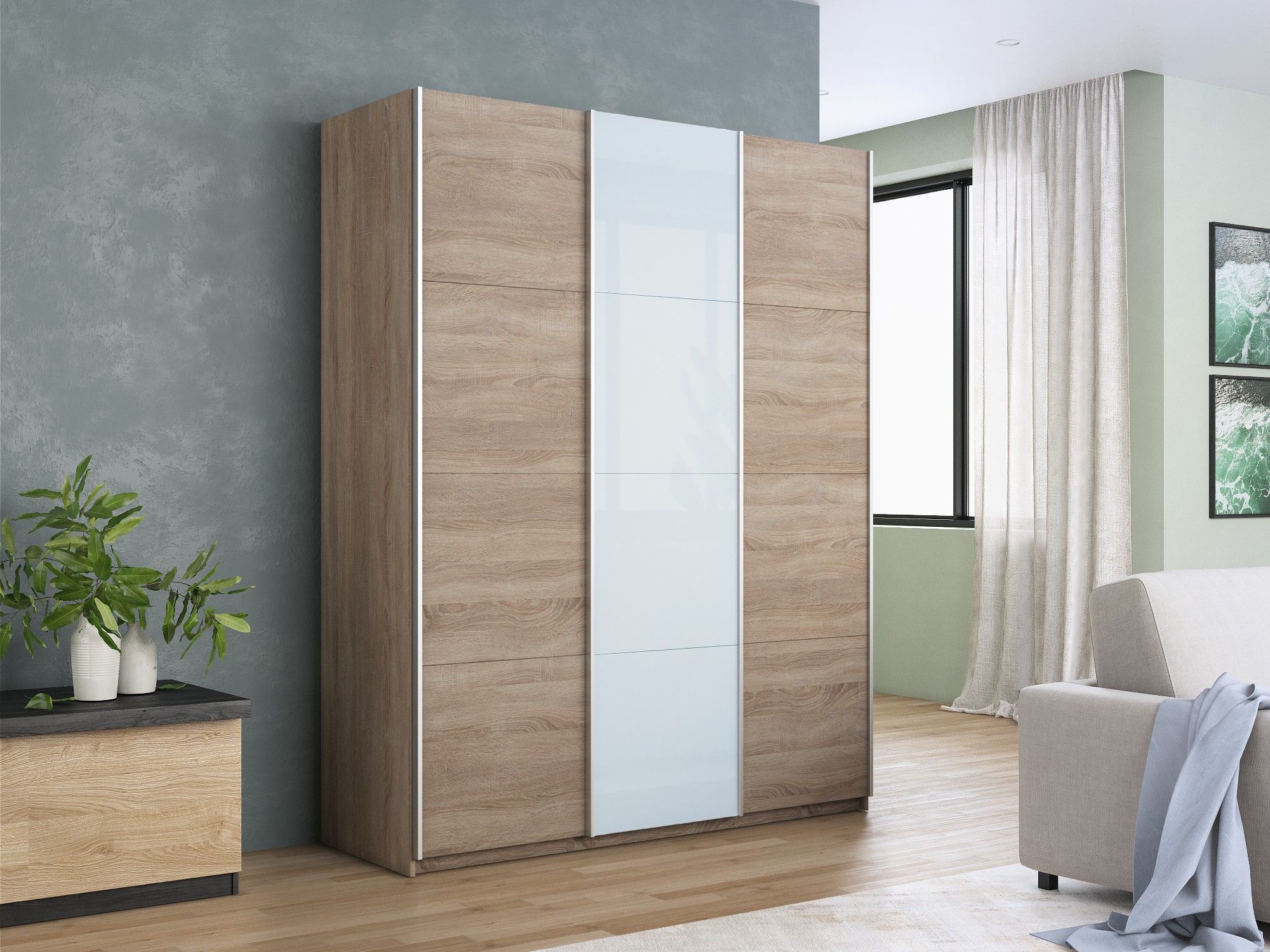 Отзывы о Столплит Шкаф-купе Прайм 3-х дверный ДСП/Стекло белое/Доводчики 180х57х230 Дуб сонома