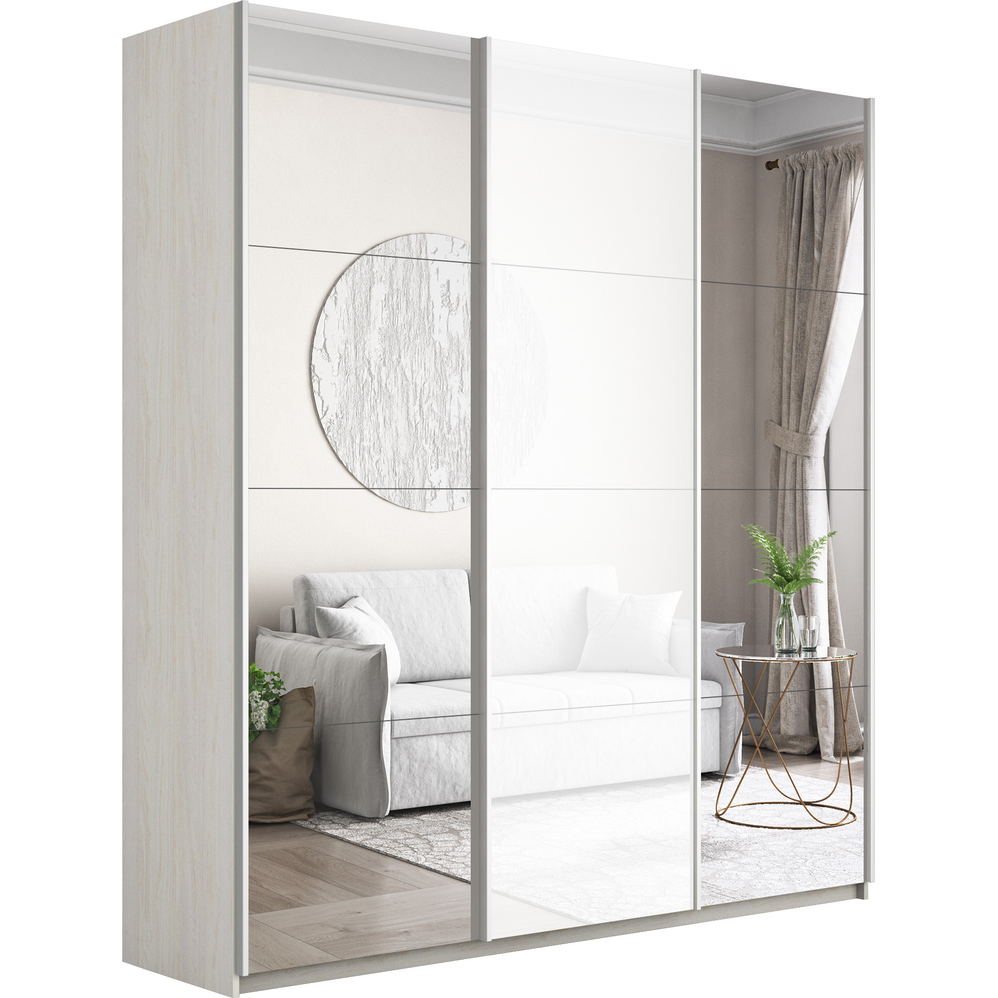 Отзывы о Столплит Шкаф-купе Прайм 3-х дверный Зеркала/Стекло белое/Доводчики 180х57х230 Ясень Анкор светлый