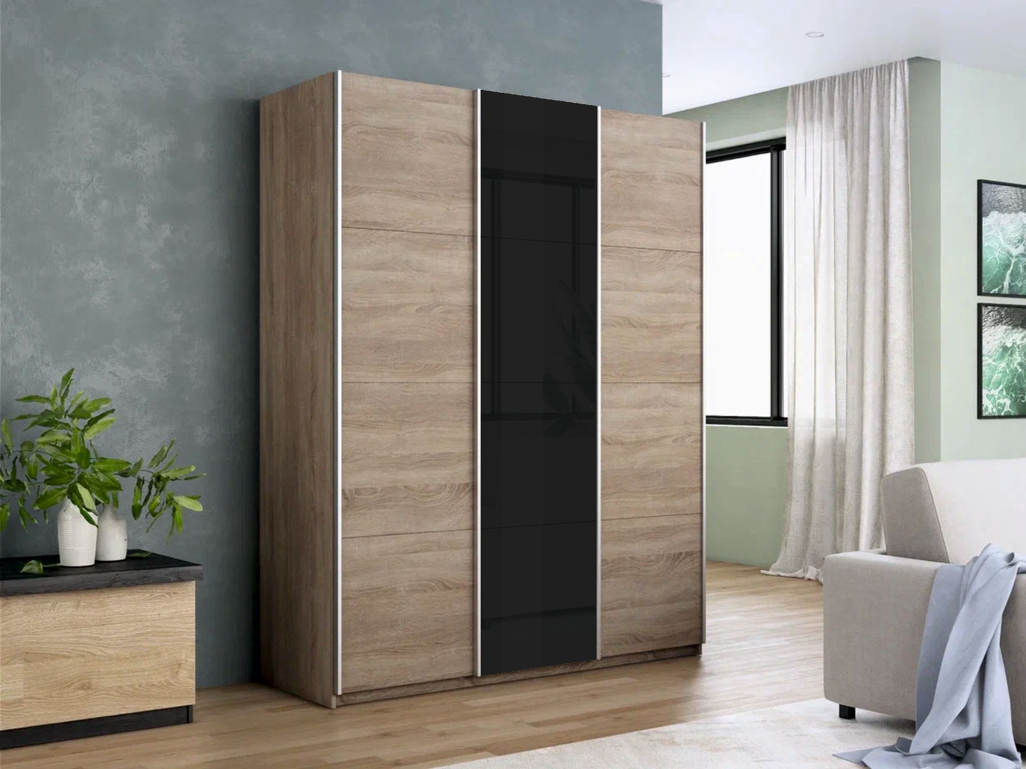 Отзывы о Столплит Шкаф-купе Прайм 3-х дверный ДСП/Стекло черное/Доводчики 180х57х230 Дуб сонома