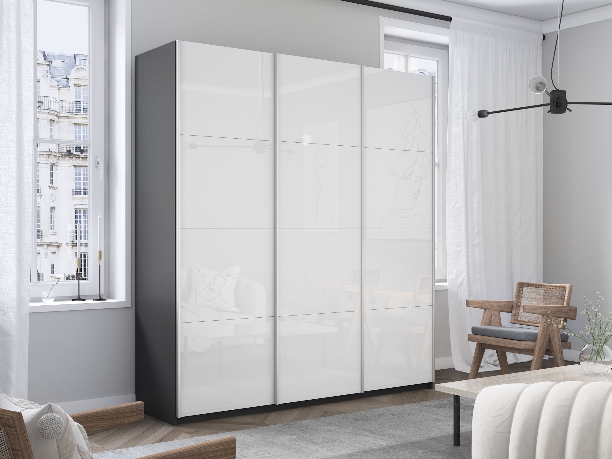 Отзывы о Столплит Шкаф-купе Прайм 3-х дверный Стекла белые/Доводчики 180х57х230 Серый диамант