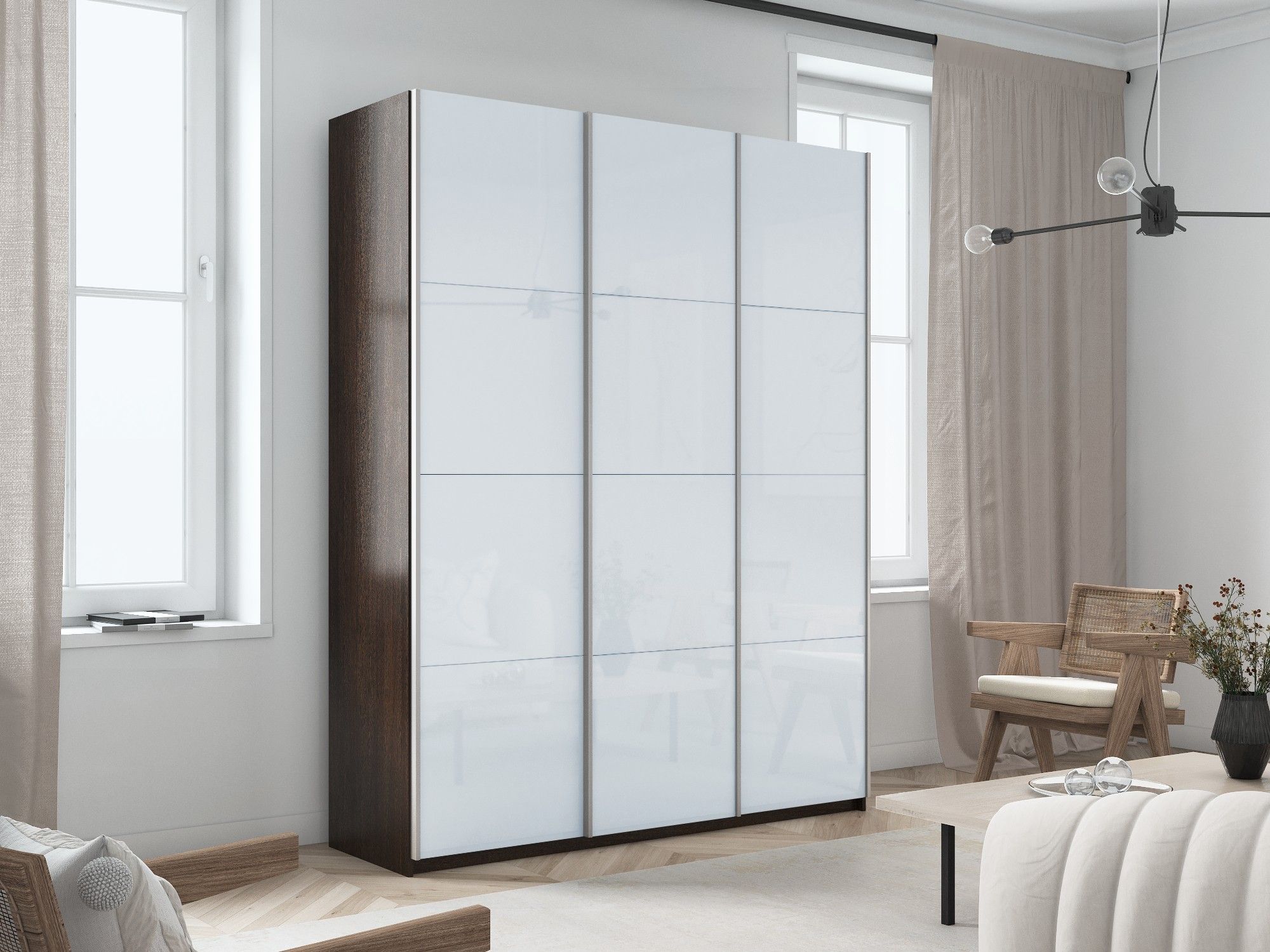 Отзывы о Столплит Шкаф-купе Прайм 3-х дверный Стекла белые/Доводчики 210х57х230 Венге