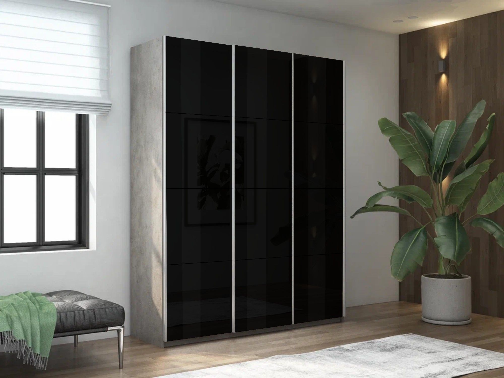 Отзывы о Столплит Шкаф-купе Прайм 3-х дверный Стекла черные/Доводчики 210х57х230 бетон