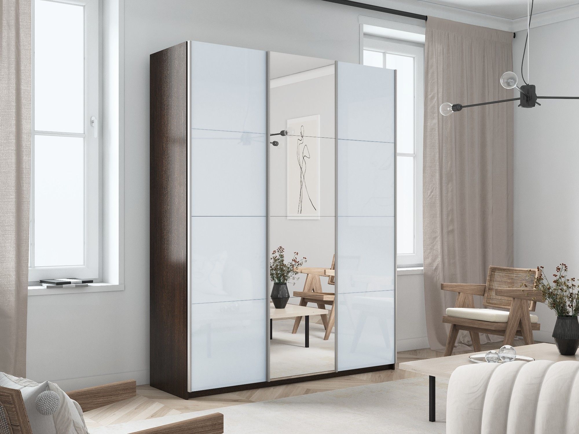 Отзывы о Столплит Шкаф-купе Прайм 3-х дверный Стекла белые/Зеркало/Доводчики 210х57х230 Венге