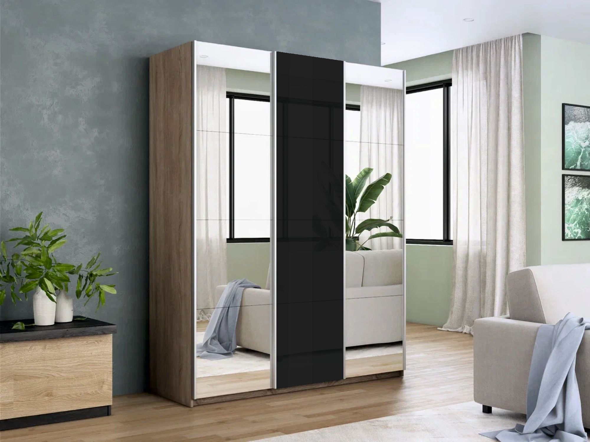 Отзывы о Столплит Шкаф-купе Прайм 3-х дверный Зеркала/Стекло черное/Доводчики 180х57х230 Дуб сонома