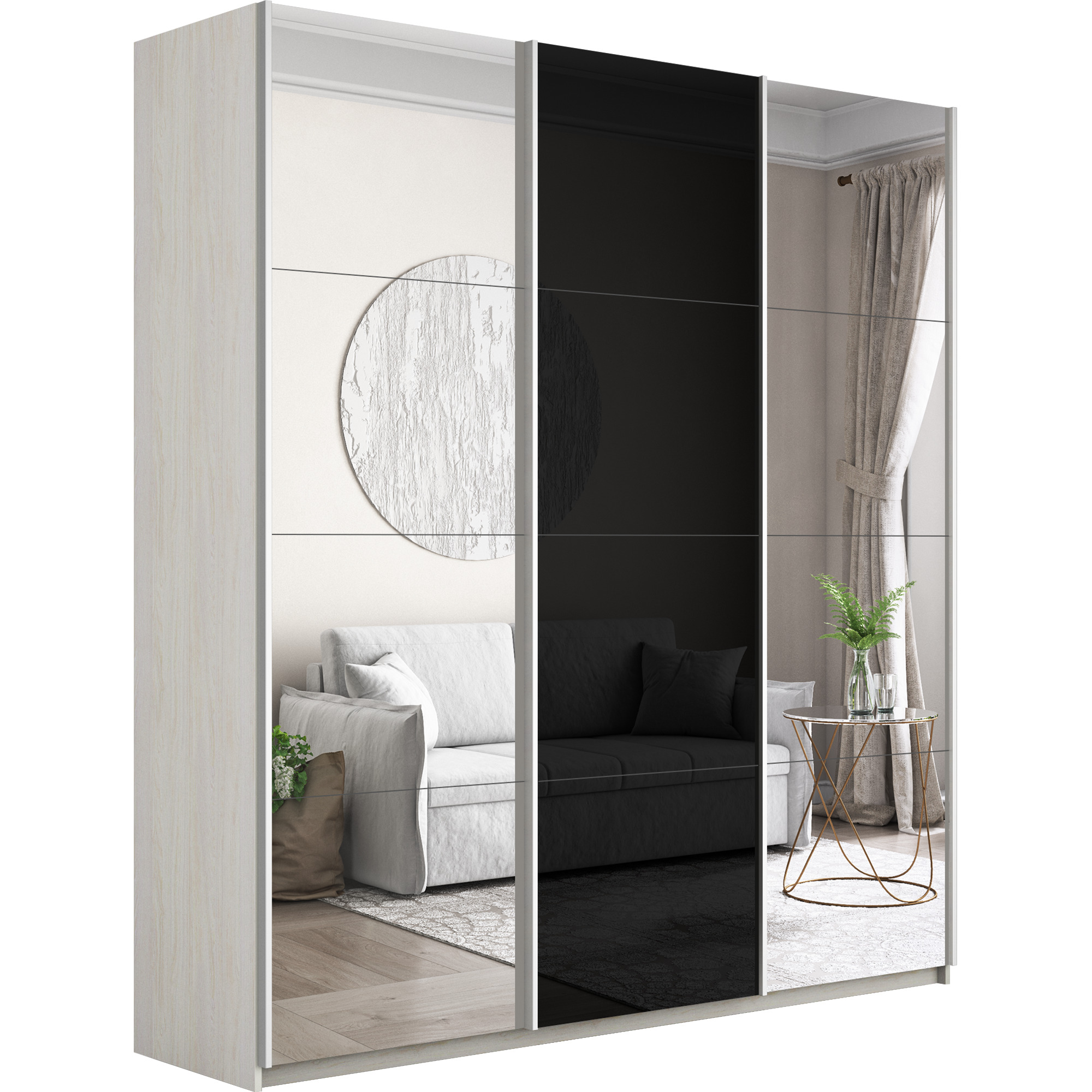 Отзывы о Столплит Шкаф-купе Прайм 3-х дверный Зеркала/Стекло черное/Доводчики 180х57х230 Ясень Анкор светлый