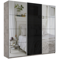 Отзывы о Столплит Шкаф-купе Прайм 3-х дверный Зеркала/Стекло черное/Доводчики 210х57х230 бетон