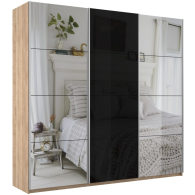 Отзывы о Столплит Шкаф-купе Прайм 3-х дверный Зеркала/Стекло черное/Доводчики 210х57х230 Дуб сонома
