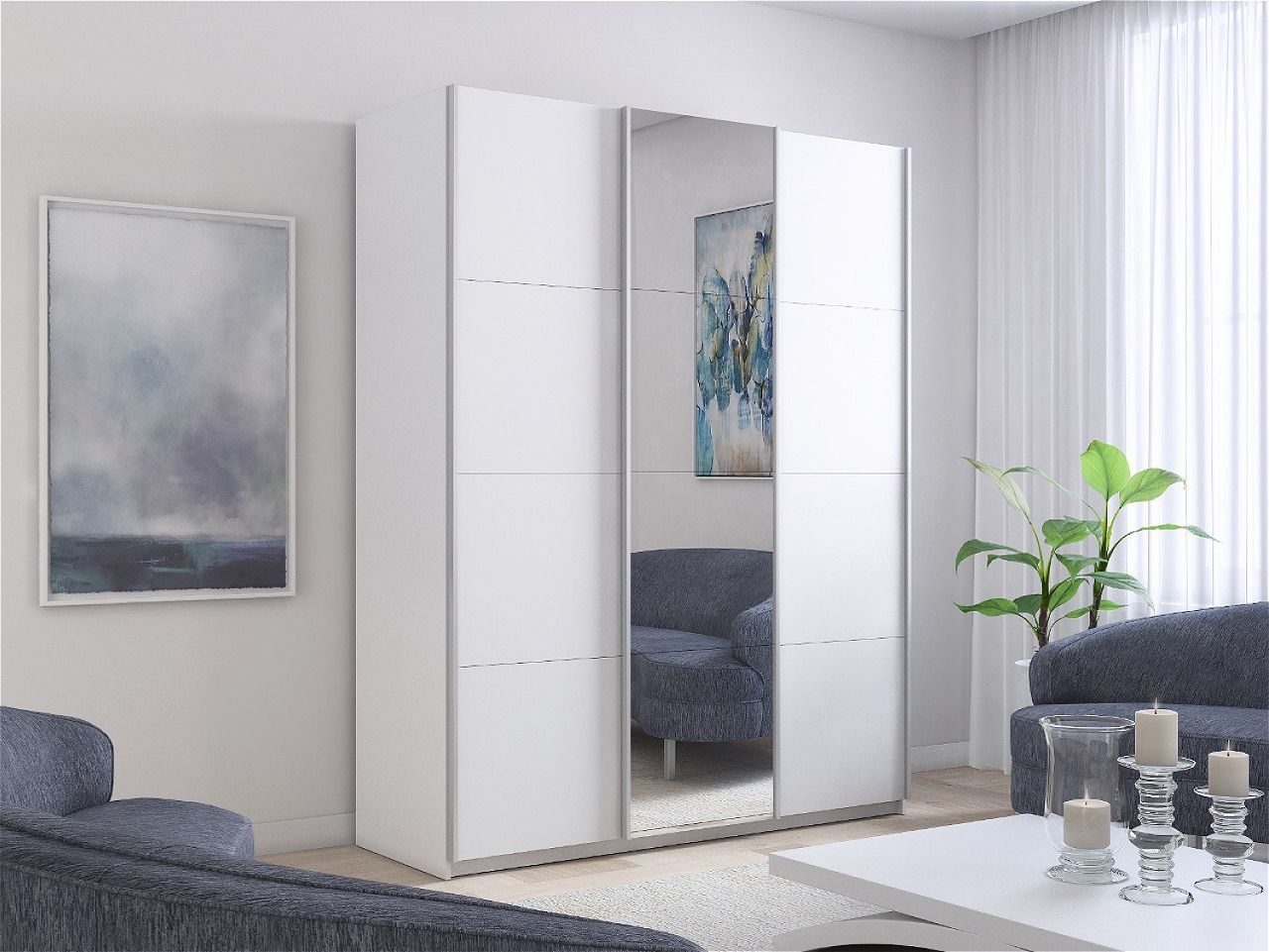 Отзывы о Столплит Шкаф-купе Широкий Прайм 3-х дверный ДСП/Зеркало/Доводчики 240х57х230 Белый снег