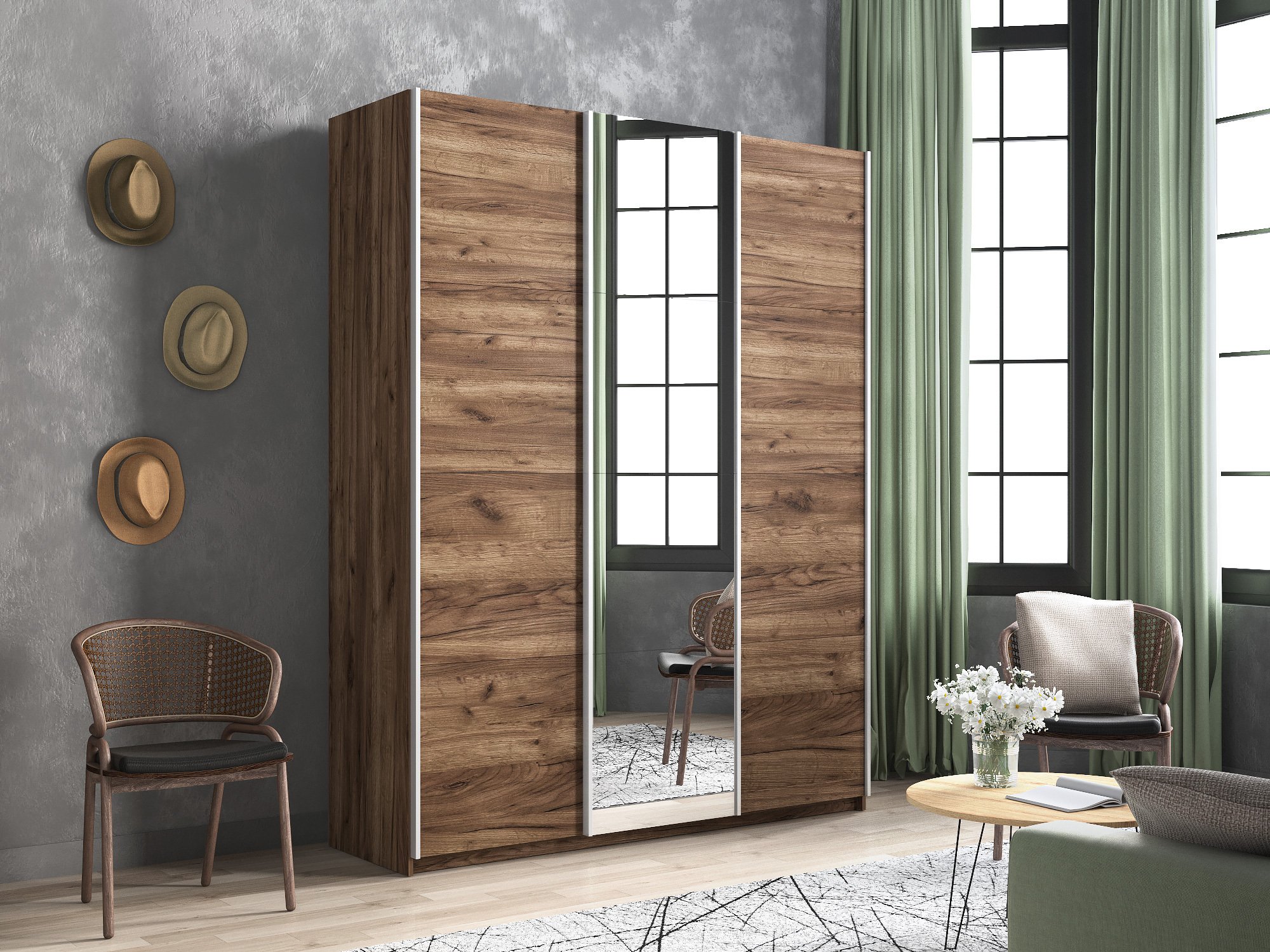 Отзывы о Столплит Шкаф-купе Широкий Прайм 3-х дверный ДСП/Зеркало/Доводчики 240х57х230 Дуб/крафт/табак