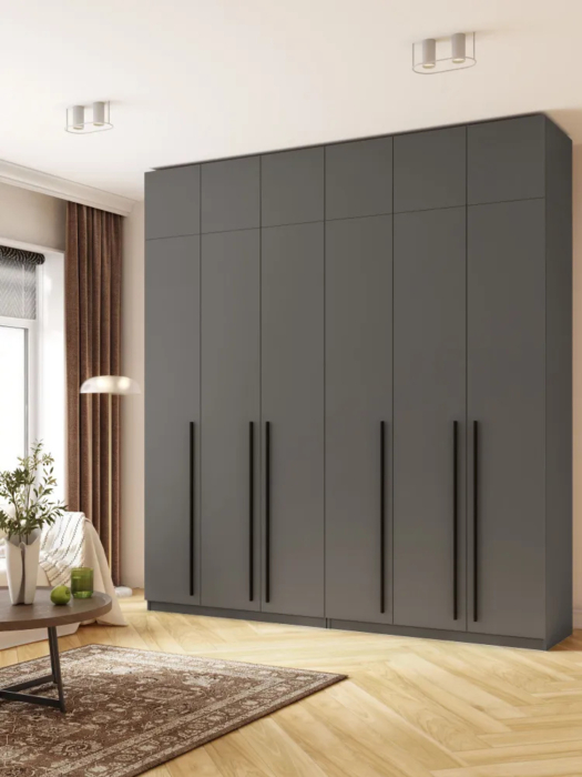 Размеры модели идеально подходят для размещения в больших комнатах, а объемное внутреннее пространство с множеством секций предлагает достаточно места для хранения как верхней одежды, так и деликатных вещей. Распашной механизм дверей позволяет легко открывать и закрывать шкаф, обеспечивая удобный доступ ко всем вашим гардеробным принадлежностям.