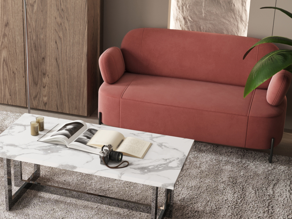 Обивка выполнена из простого в уходе велюра - мягкого и нежного на ощупь. В качестве внутреннего наполнителя использован ППУ повышенной жесткости. Эластичные ремни в основании обеспечивают плавное погружение при посадке и комфортную посадку.