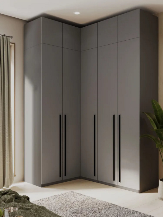 Модель оформлена в светлом белом цвете, что придаёт интерьеру свежесть и лёгкость. Конструкция этого распашного шкафа включает два двери и практичные ящики, которые позволят удобно хранить одежду, обувь и аксессуары. Угловой шкаф обеспечивает максимальный доступ к хранению вещей, что делает его функциональным и удобным.