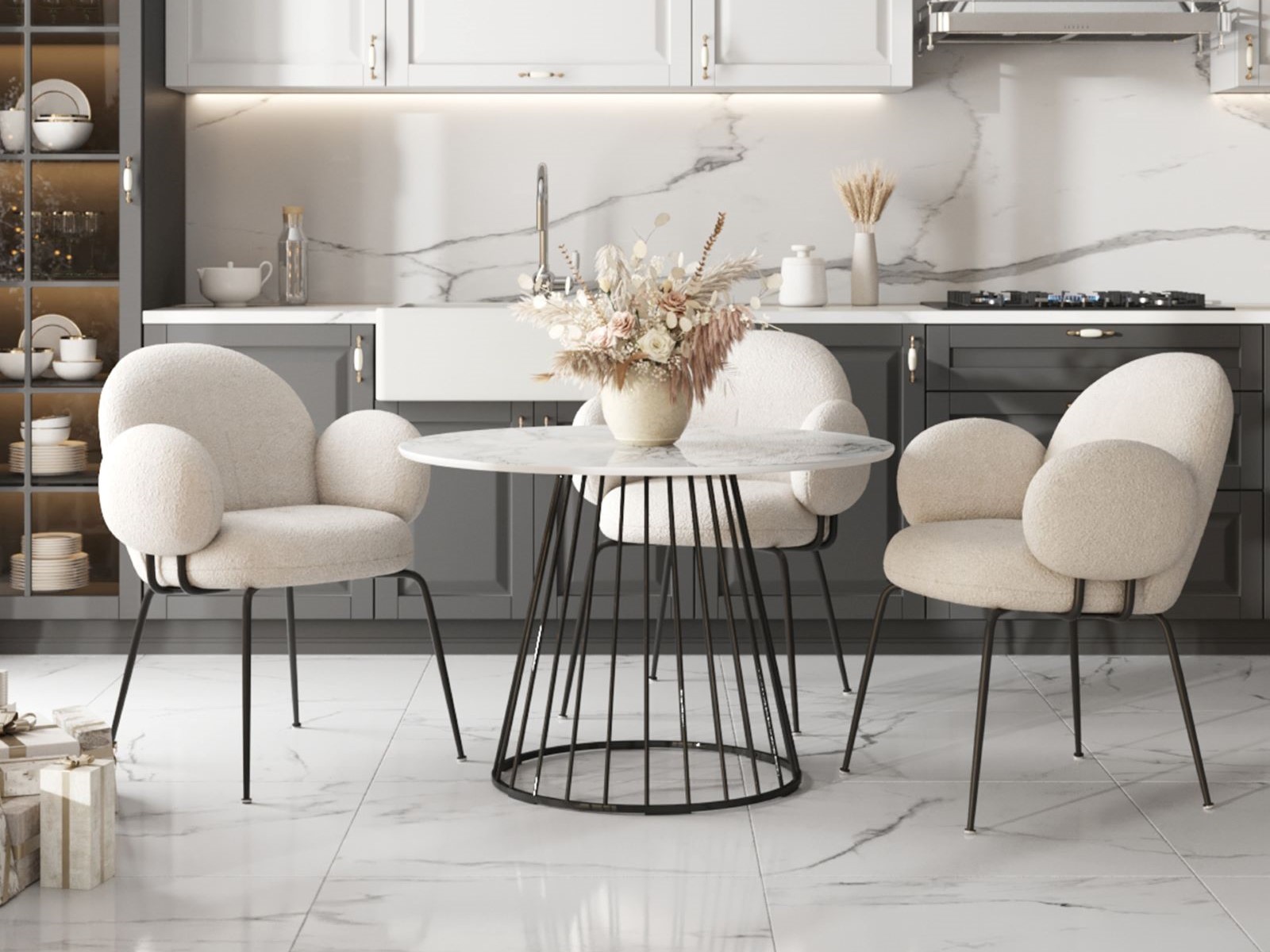 Комфортное мини кресло Nina с широкой закруглённой спинкой. Обивка выполнена из мягкой и легкой ткани букле. Красивый и очень мягкий материал, который оставляет ощущение теплоты и уюта. Прочная конструкция выдерживает нагрузки до 150 кг. Полукруглая спинка и широкое сиденье обеспечат удобство при посадке. Лаконичный дизайн стула дополнит любой интерьер и будет прекрасно смотреться в комплекте с обеденным столом. Глубина сиденья: 48.5 см. Ширина сиденья: 57 см. Высота сиденья: 51 см.