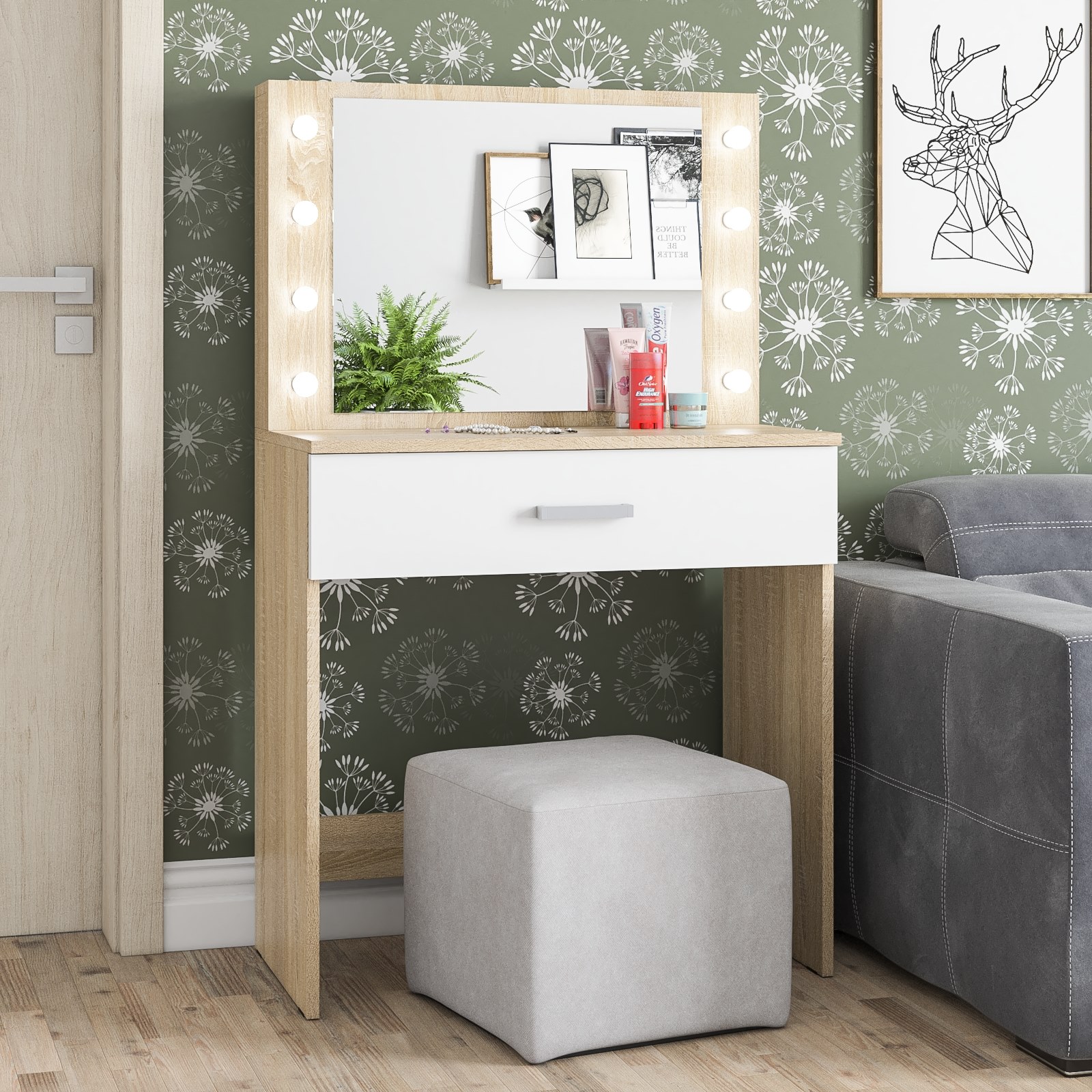 Отзывы о Столплит Столик косметический с подсветкой СТ-4 Дуб Сонома, Белый