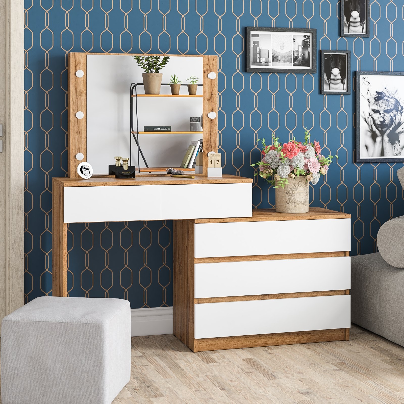 Туалетный столик имеет универсальную сборку - тумбу с 3 ящиками можно разместить как с левой, так и с правой стороны.