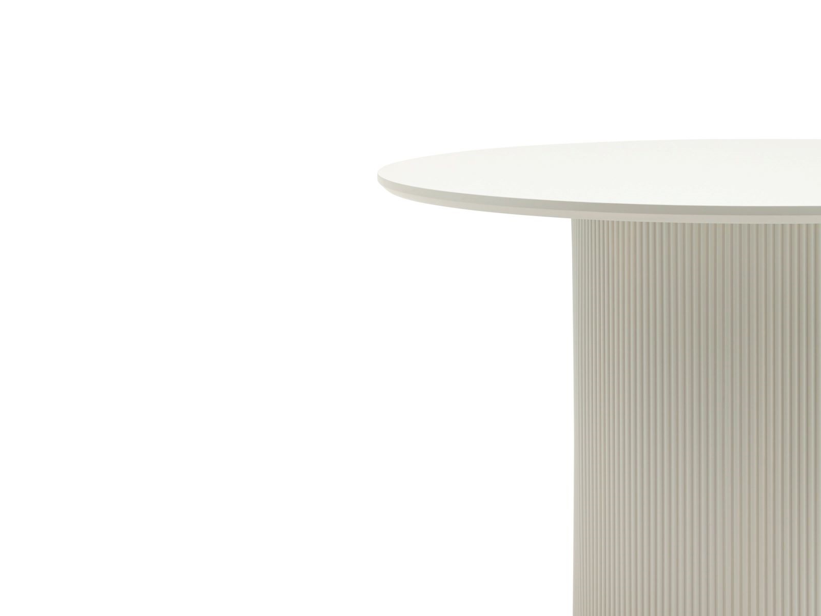 Столешница выполнена из прочного и долговечного МДФ. Поверхность столешницы гармонично сочетается с массивной основой. Простая круглая форма стола позволит легко вписать его в современный интерьер, стол украсит кухню, гостиную или современное кафе, ресторан. Опорное плиссированное основание стола в лаконичном дизайне надёжно удерживает всю конструкцию и дополняют монолитный образ.