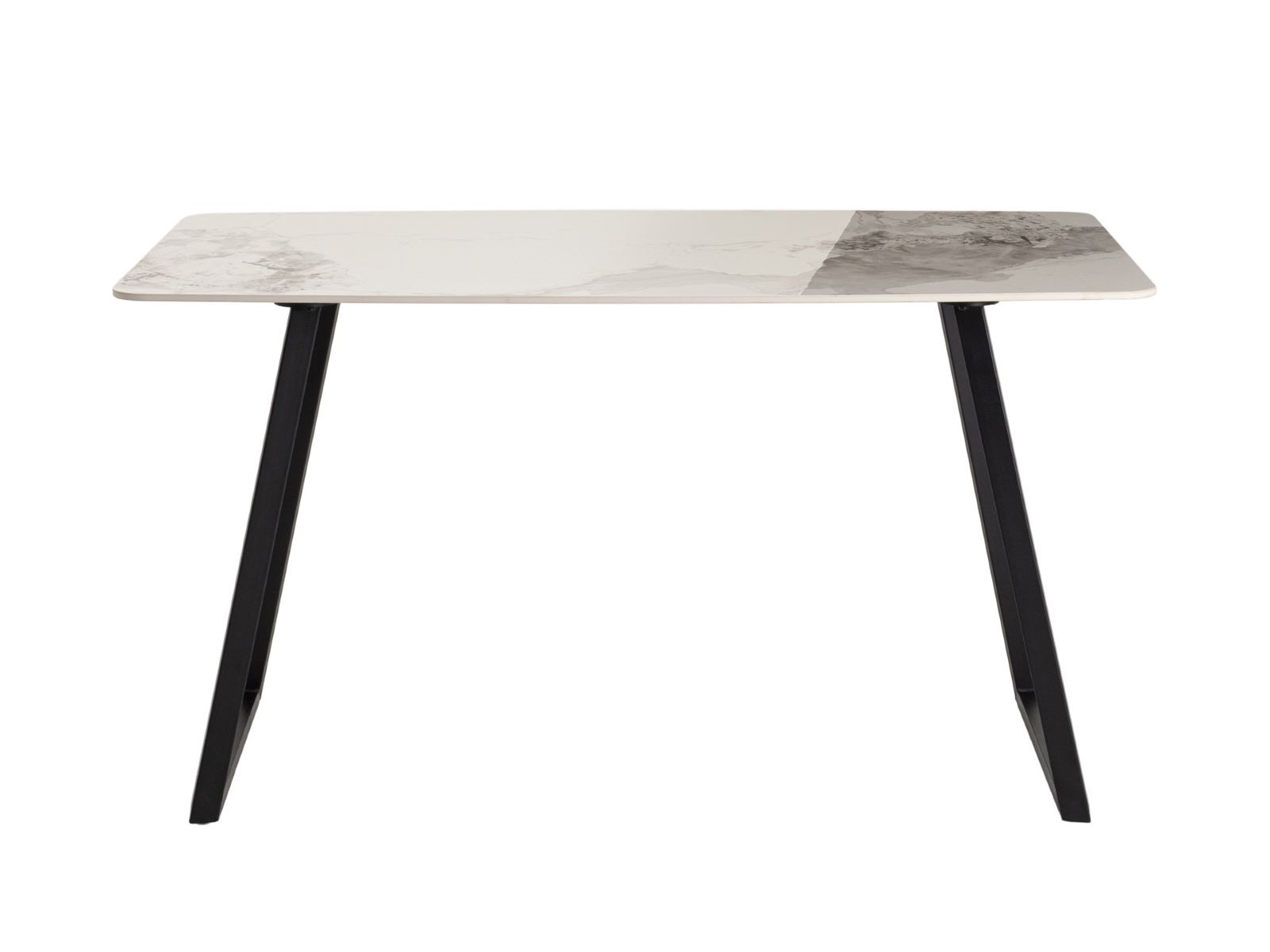 Столешница выполнена из прочной керамики, что придаёт модели премиальный внешний вид и обеспечивает устойчивость к повреждениям и пятнам. Металлические ножки в сером цвете добавляют устойчивости и подчеркивают минималистичный стиль стола.