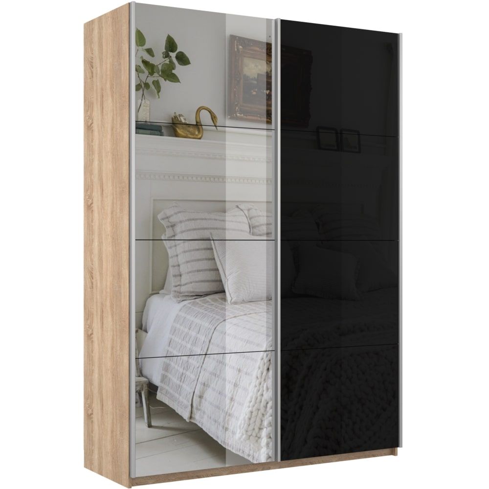 Отзывы о Столплит Шкаф-купе Прайм 2х дверный Зеркало/Стекло черное 140х57х230 Дуб Сонома