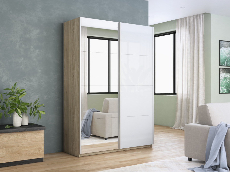 Отзывы о Столплит Шкаф-купе Прайм 2х дверный Зеркало/Белый Глянец 140х57х230 Дуб Сонома