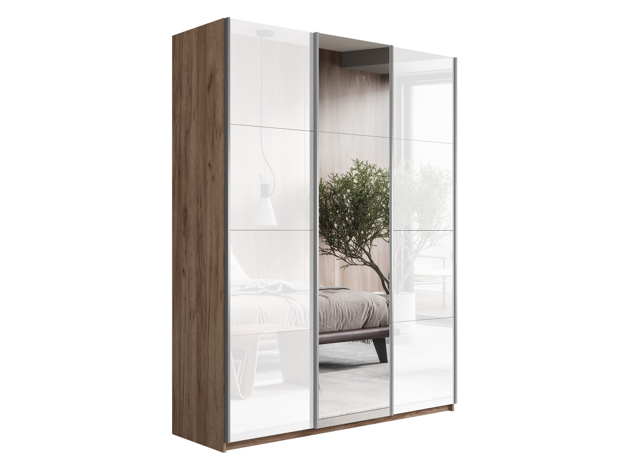 Отзывы о Столплит Шкаф Прайм трио 2-ва Стекла белого+ Зеркало 2300 x 2100 x 570 Дуб/крафт/табак