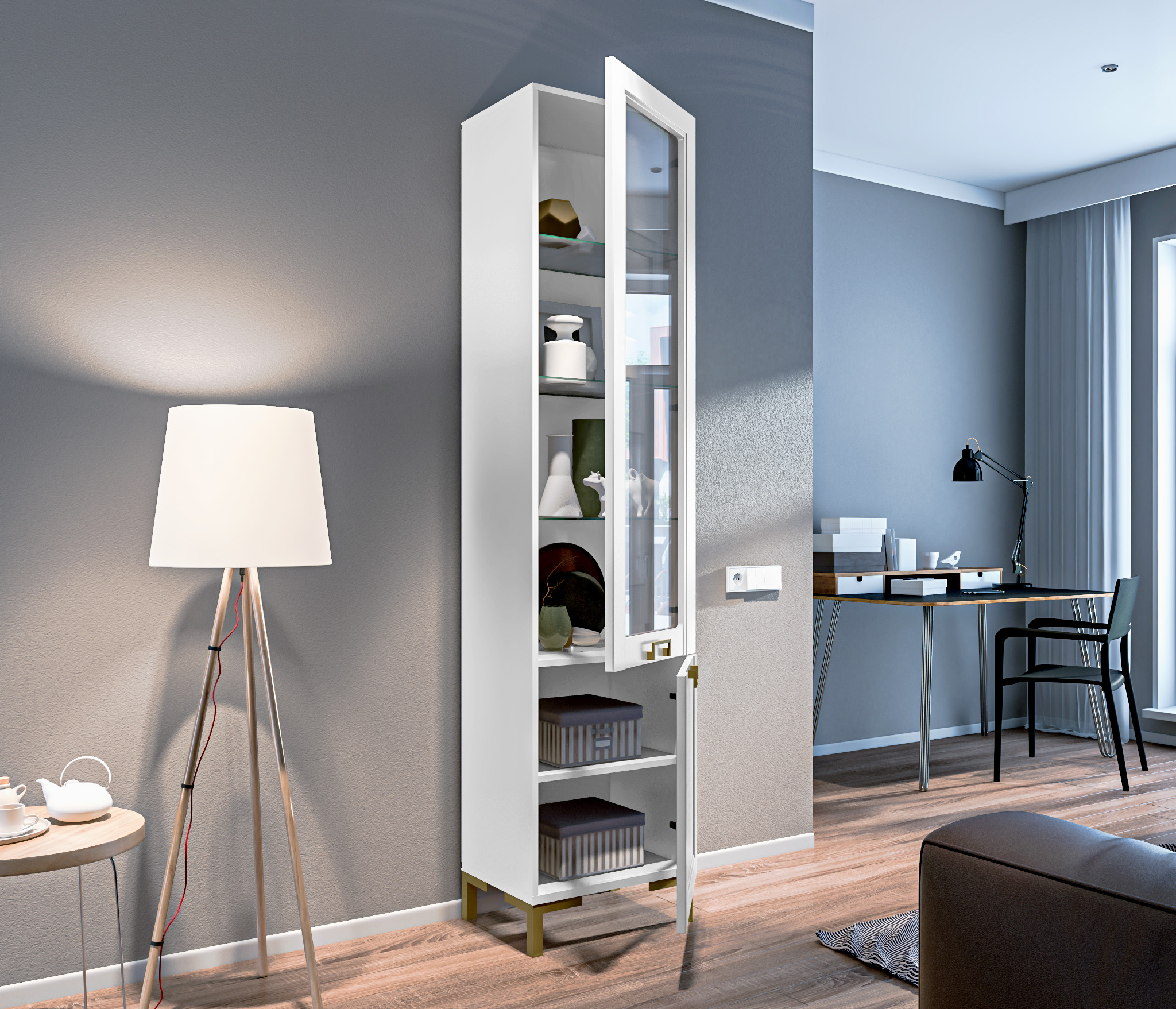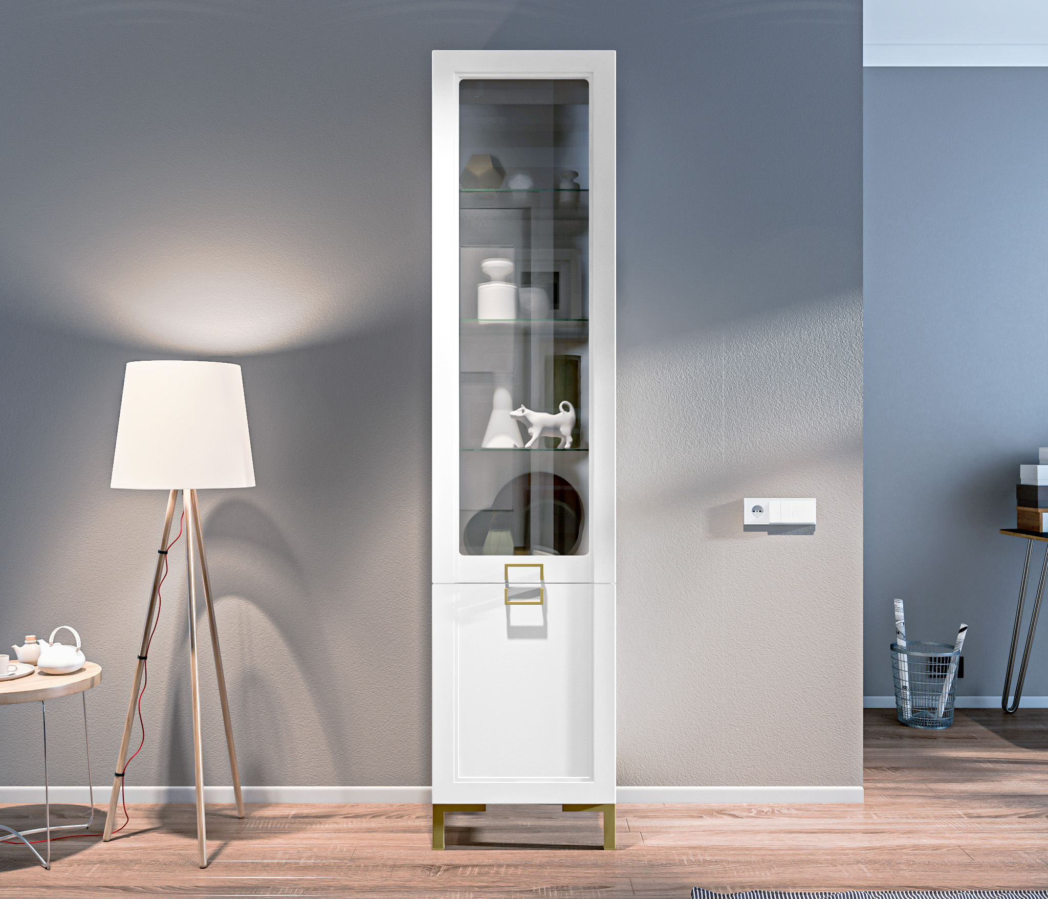 Ассоль СБ-3429 Шкаф-витрина Белый/МДФ Белый