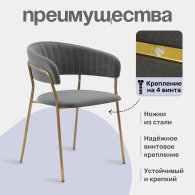 Кресло выполнено с золотистыми акцентами, что придает ему изысканный и современный вид. Обивка из велюра, обеспечивает мягкость и комфорт при использовании.