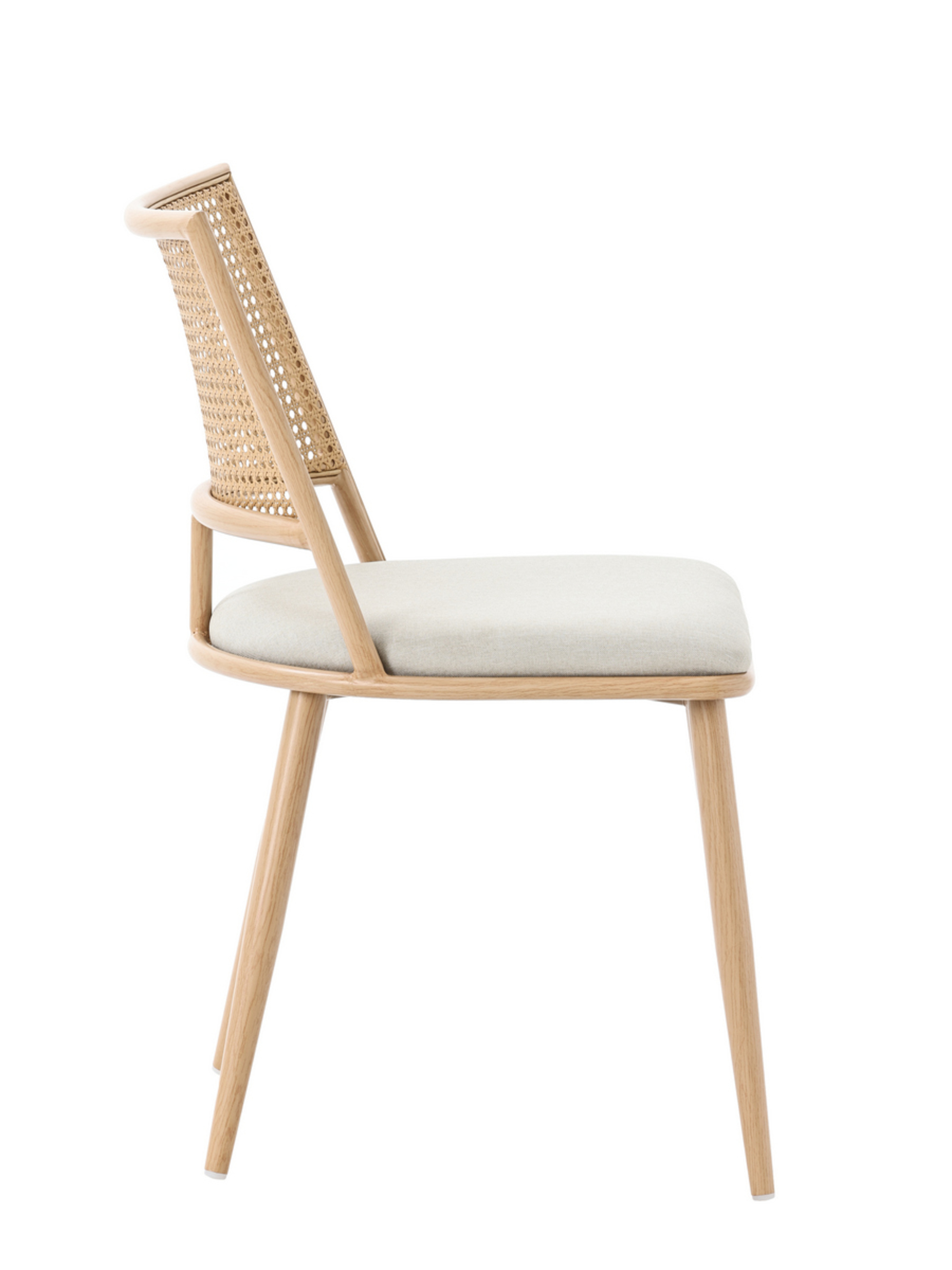 Спинка стула выполнена из искусственного ротанга, что придает ему современный и стильный вид. Максимальная нагрузка на стул составляет 120 кг, что делает его надежным и устойчивым.