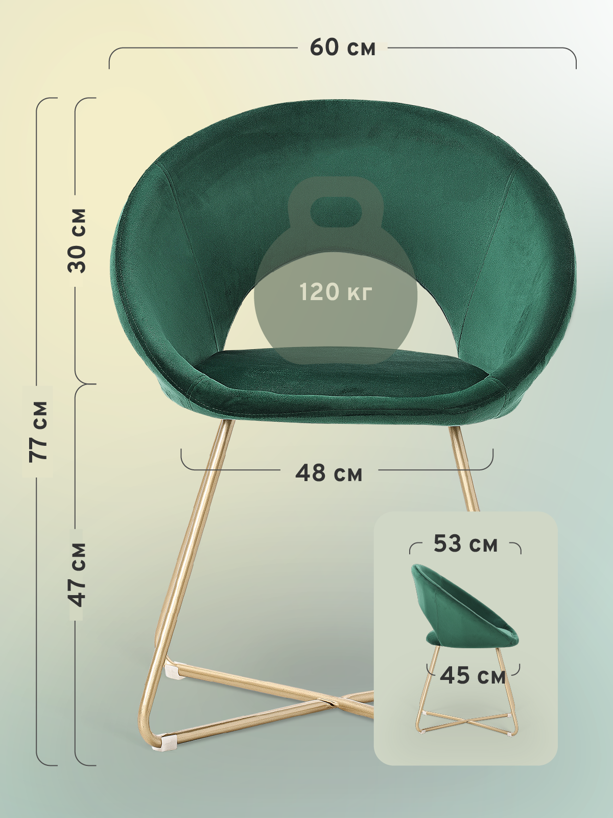 Основание кресла выполнено из металла, что гарантирует его прочность и долговечность. Максимальная нагрузка на кресло составляет 120 кг, что позволяет использовать его для людей разного телосложения.