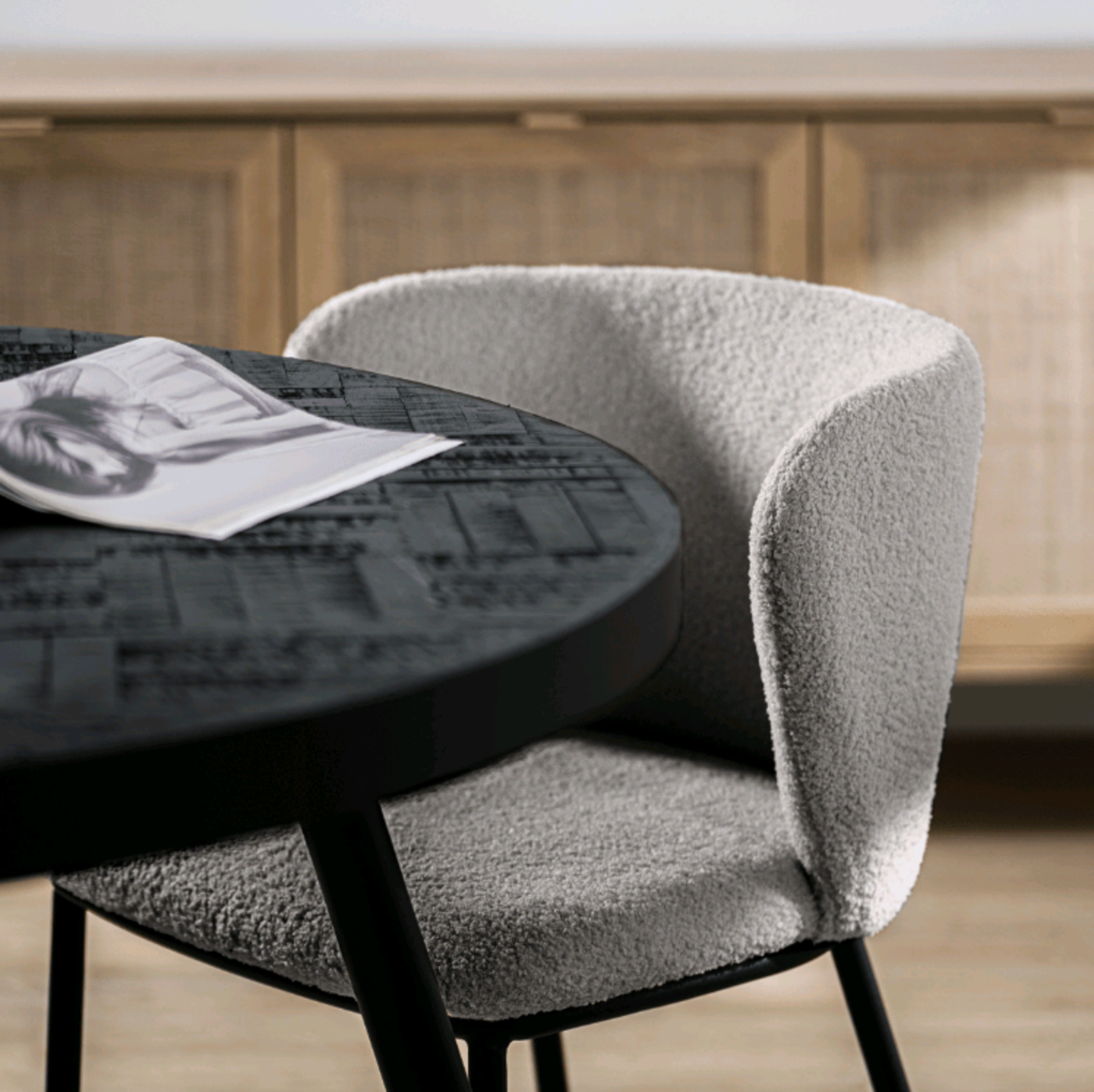 Кресло выполнено в бежевом цвете с черными ножками, что придает ему изысканный и современный вид. Обивка из букле, обеспечивает мягкость и комфорт при использовании.