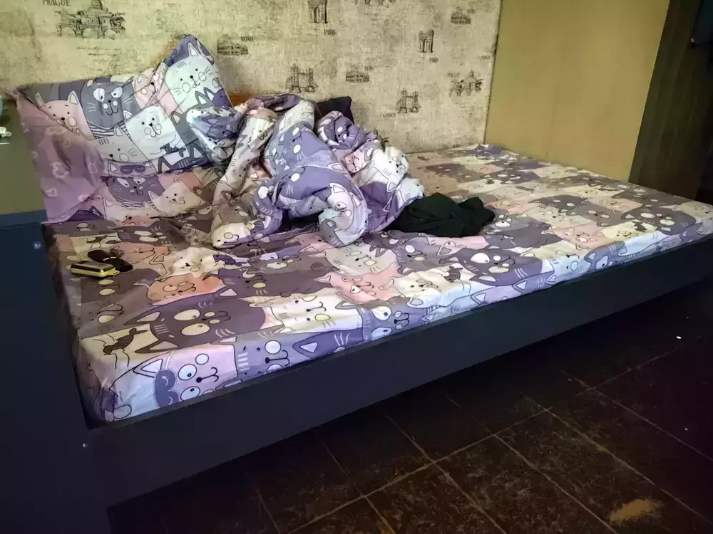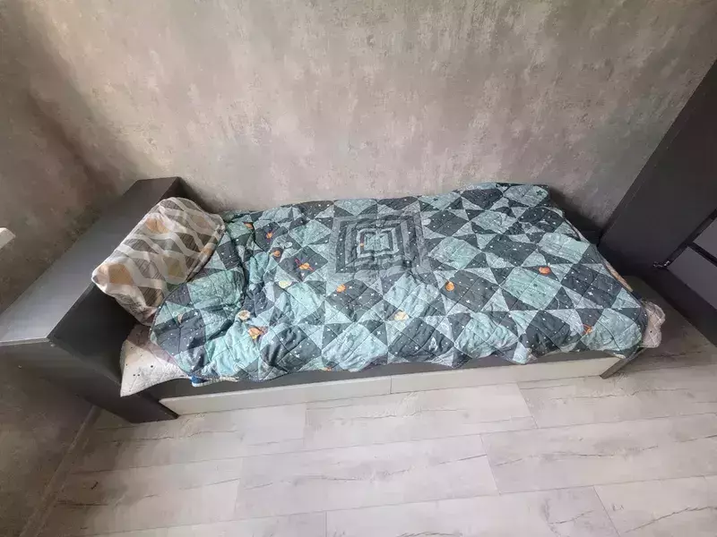 Кровать имеет односпальное место 1200×2000 мм с прочным основанием в комплекте. Матрас приобретается отдельно, позволяя выбрать оптимальный уровень жесткости и комфорта.