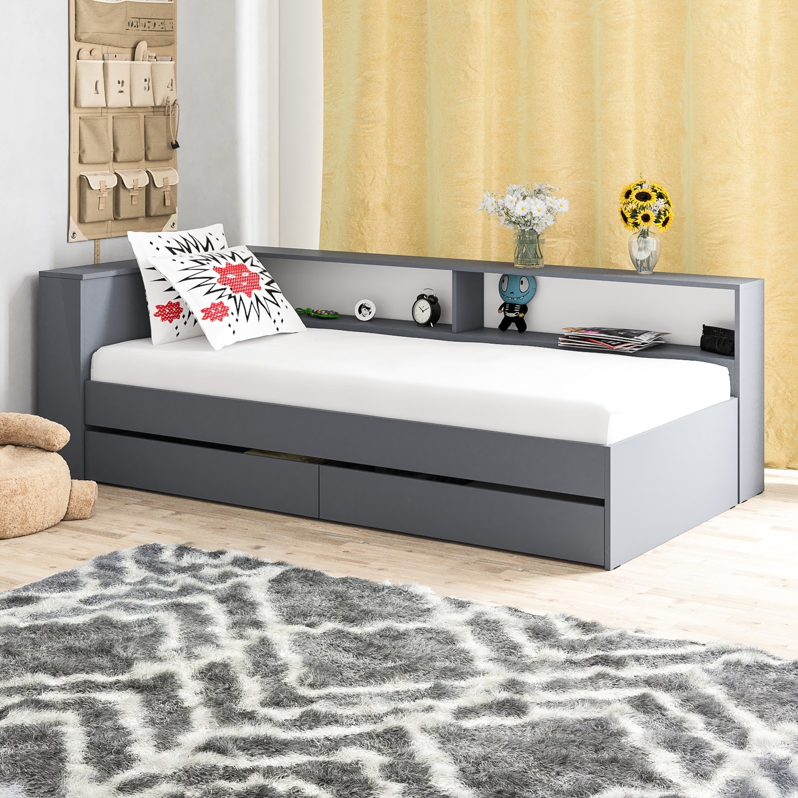 Отзывы о Столплит Кровать односпальная 900 с ящиками и прикроватным блоком Ксения Графит