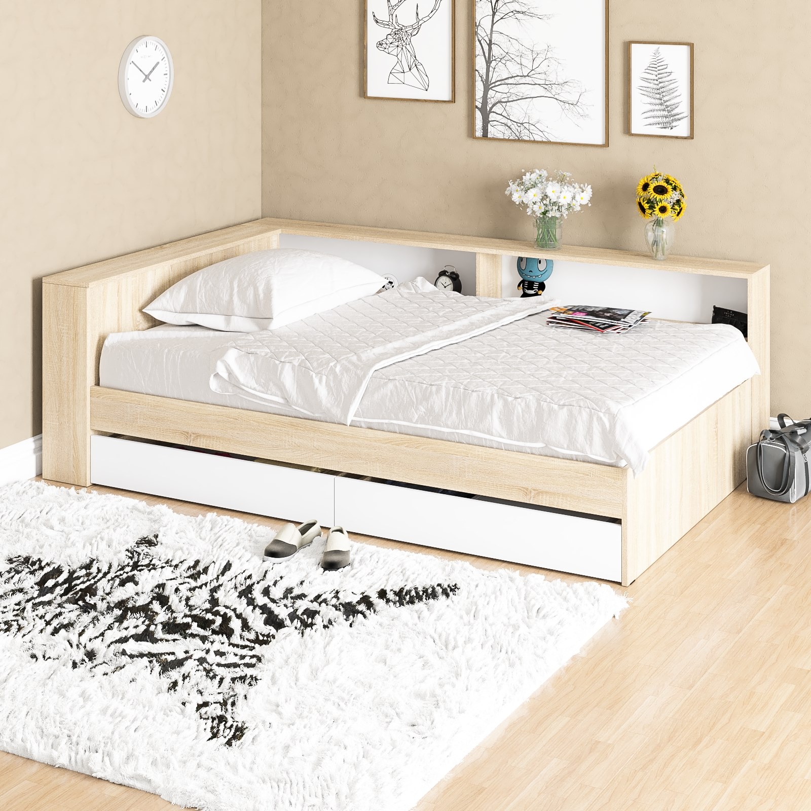 Отзывы о Столплит Ксения 1200 кровать с ящиками, ящиком для белья и прикроватным блоком для вещей Дуб Сонома, Белый