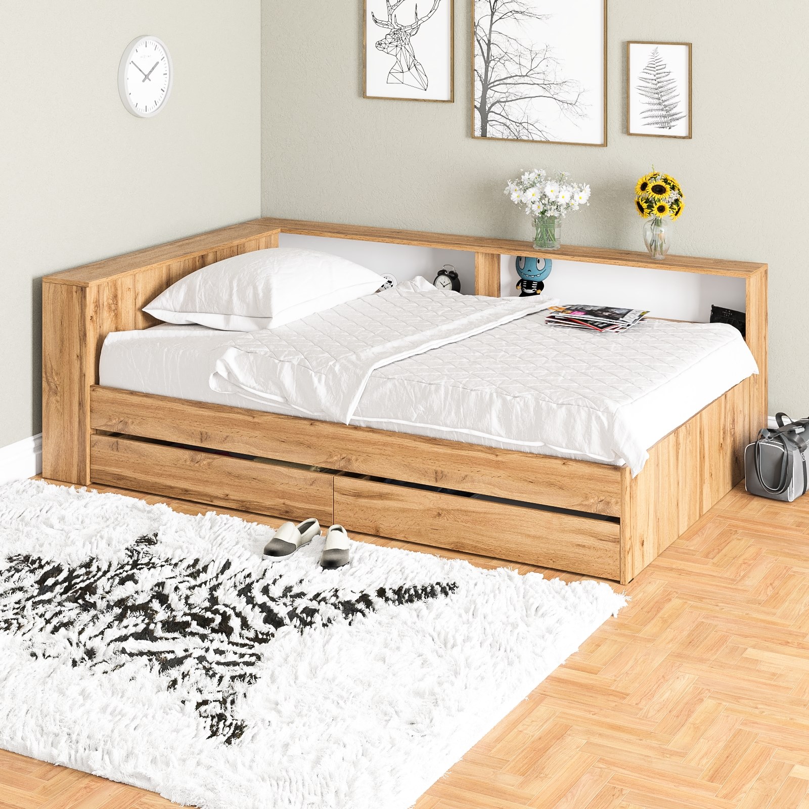 Отзывы о Столплит Ксения 1200 кровать с ящиками, ящиком для белья и прикроватным блоком для вещей Дуб вотан