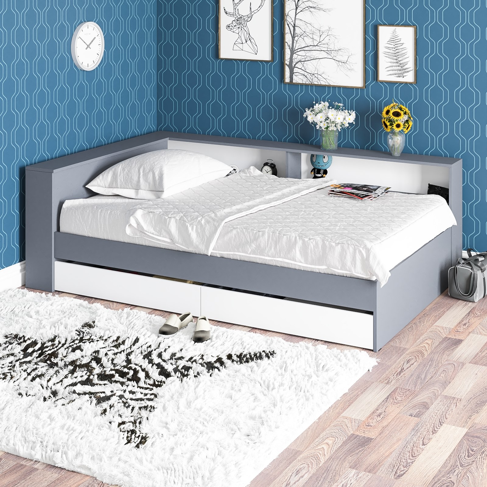 Отзывы о Столплит Ксения 1200 кровать с ящиками, ящиком для белья и прикроватным блоком для вещей Графит/Белый