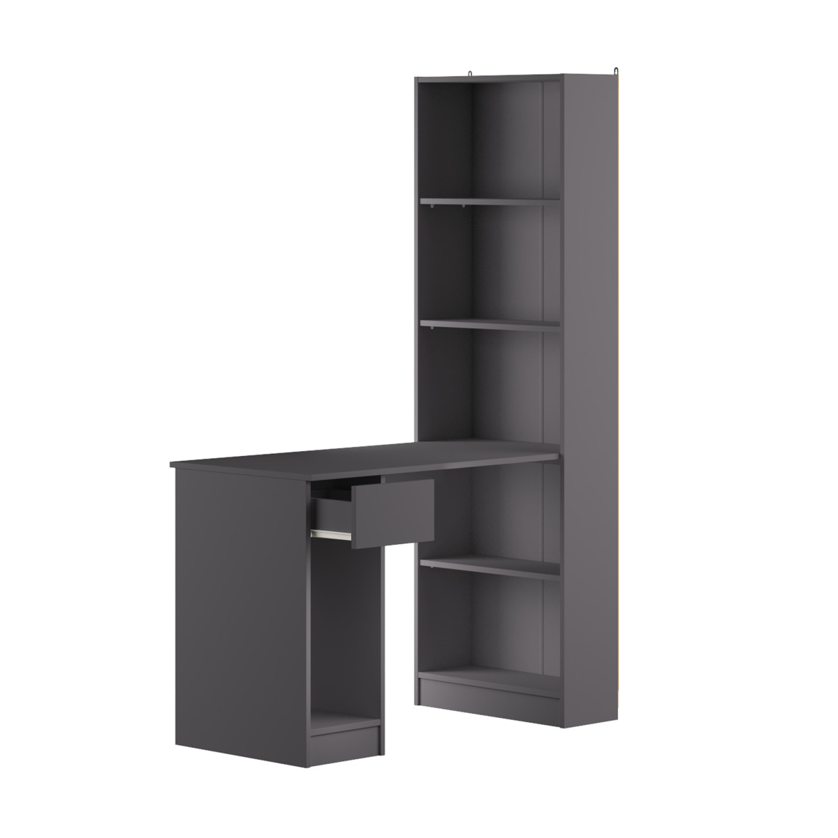 Комбинированный шкаф-стеллаж, дополненный письменным столом — отличное решение для организации небольшой, но функциональной рабочей зоны. Удачная модель включает в свою конструкцию вместительный открытый стеллаж, эргономичный компьютерный стол с выдвижным ящиком и нишей под системный блок. Отлично подойдет для оборудования рабочего места школьника или домашнего офиса.