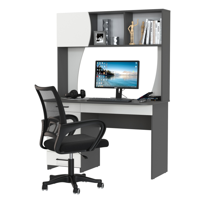Стол компьютерный с надстройкой Сигма и компьютерное кресло чёрное - комплект объединяет в себе всё необходимое для комфортной, продуктивной работы или учёбы. Удобный и функциональный компьютерный стол Сигма с надстройкой и эргономичное чёрное кресло с дышащей сеткой.