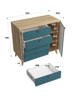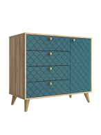 Комод Велламо ВО-11 – стильный и функциональный, идеальное решение для современного интерьера. Комод ВО-11 – это удобство, надежность и стиль в одной модели. Отличный выбор для спальни, прихожей или гостиной! Цвет: блэквуд ячменный / бирюза Материалы: ЛДСП 16 мм (корпус), МДФ 16 мм (фасады) Фурнитура: телескопические направляющие без доводчиков, металлические ручки, петли с доводчиками, деревянные опоры. Преимущества комода Велламо ВО-11: Просторное хранение – 4 выдвижных ящика на телескопических направляющих (полное выдвижение) и распашная дверца с 3 полками для аксессуаров и текстиля. Прочные материалы – корпус из ЛДСП 16 мм, фасады из МДФ с фрезеровкой для эффектного рельефа. Устойчивость и стиль – деревянные ножки высотой 120 мм придают легкость, а металлические ручки дополняют современный облик. Универсальный дизайн – подходит для скандинавского стиля, неоклассики и минимализма. Доставка и сборка: мебель поставляется в разобранном виде, в надежной упаковке, с подробной инструкцией по сборке. Сборка осуществляется самостоятельно или с привлечением специалистов.