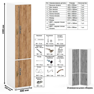 Глубокий пенал состоит из двух функциональных отделений - верхнее оборудовано горизонтальной штангой, нижнее – полкой. Сторону открывания дверей можно выбрать при сборке, что позволяет оптимально вписать мебель в интерьер с учетом ваших предпочтений.