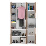 Пенал Пнл оборудован полкой сверху и снизу за распашными дверками и открытой нишей между ними - подходит для хранения книг, документов, создавая аккуратный и стильный вид. Шкаф Ш20Б состоит из двух отделений за распашными дверками. Верхнее отделение - слева – выдвижная штанга, что экономит пространство и облегчает доступ, справа – три полки и открытая ниша снизу, идеально подходящие для хранения аксессуаров, обуви, сумок или декоративных элементов. Нижнее отделение оснащено полкой по центру вещей. Справа – три полки и открытая ниша снизу, подходящие для хранения аксессуаров, обуви, сумок или декоративных элементов. Нижнее отделение оснащено полкой по центру. Сторону открывания дверей пенала вы определяете при сборке. В данной модели шкафа нет универсальной сборки.